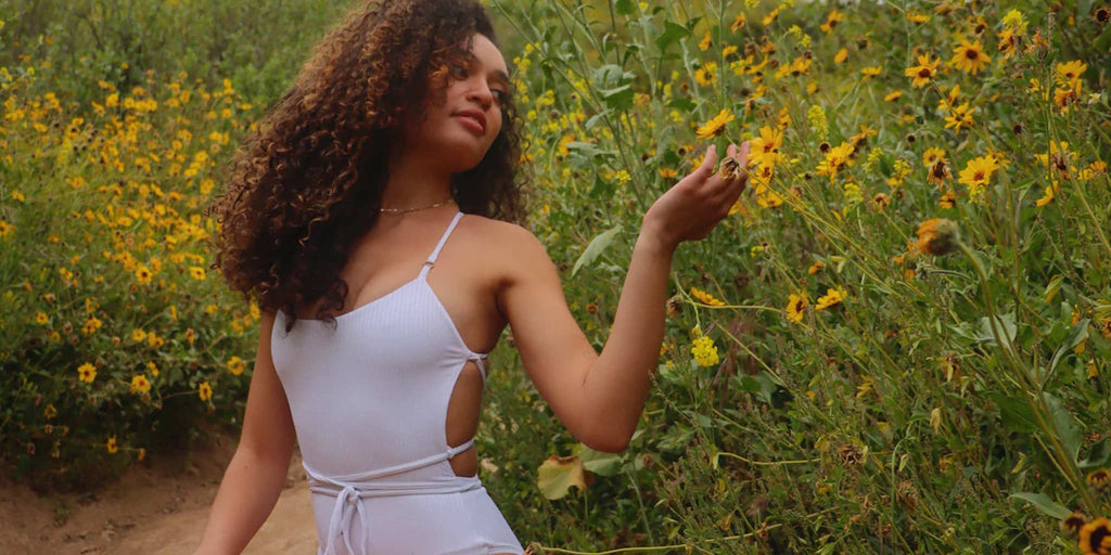 Summer wears the Yara Wrap One Piece in White EcoRib