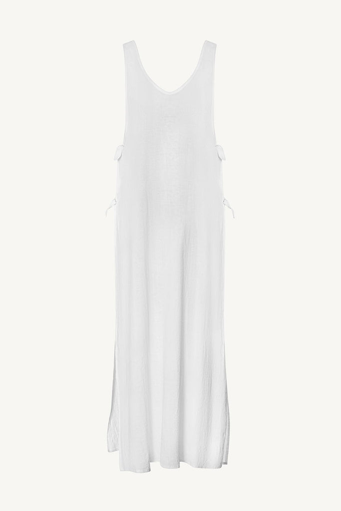 Start with your most versatile essentials—pieces that do it all. The best swimsuits for travel are things like our classic, great-fitting bikini: the Moss Top and California High Leg Bottom. A two-piece like this is your base layer for impromptu beach afternoons, and can serve as your foundation for the perfect dinner look; it’s swimwear that doubles as daywear. Your favorite lightweight coverups for warm weather, like our best-selling linen Riviera Dress, are also the perfect pieces to wear to dinner or drinks after the beach.