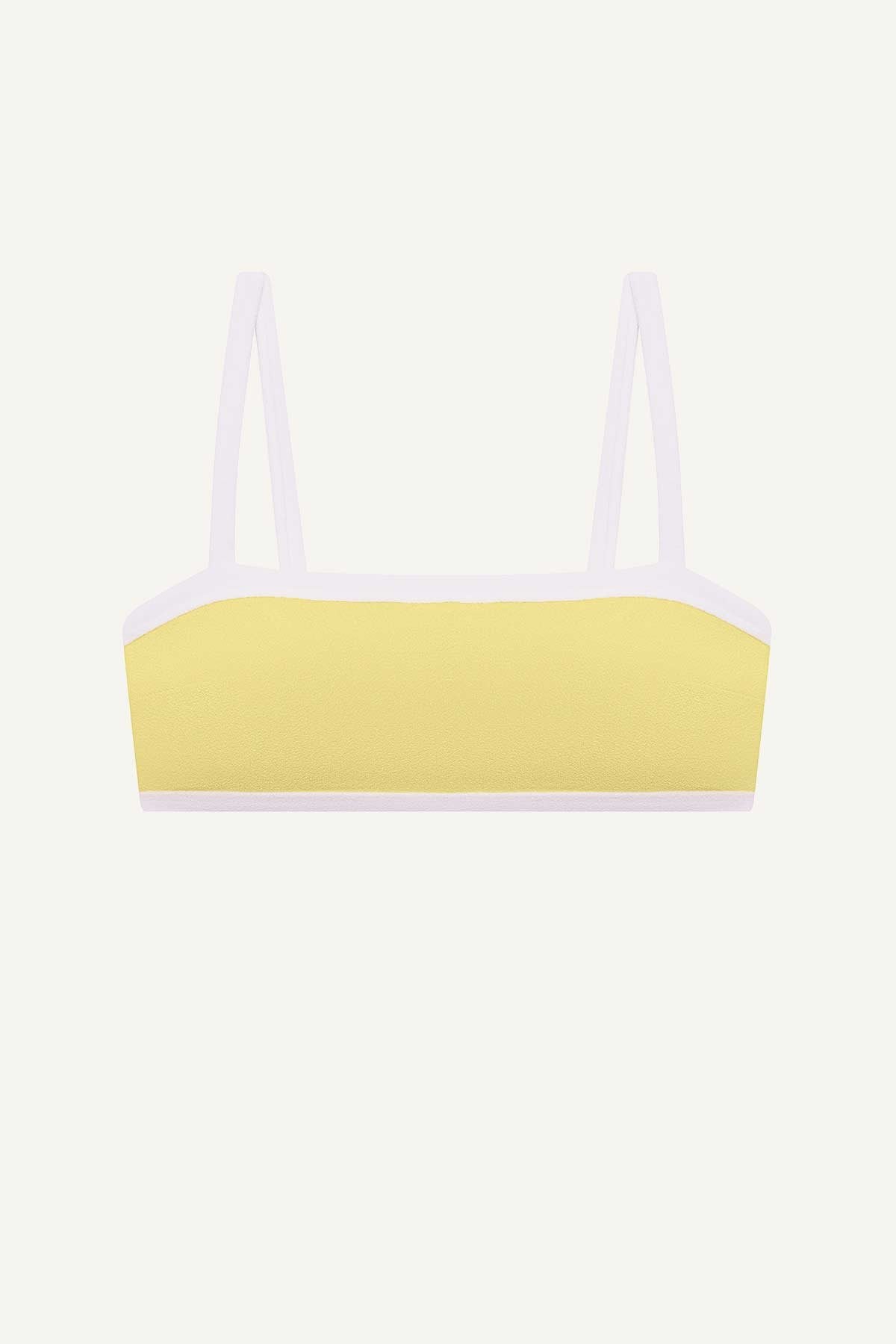 Pared down and chic, this is a clean-cut bralette edged in a soft contrast binding. Features adjustable over the shoulder straps and removable cups.