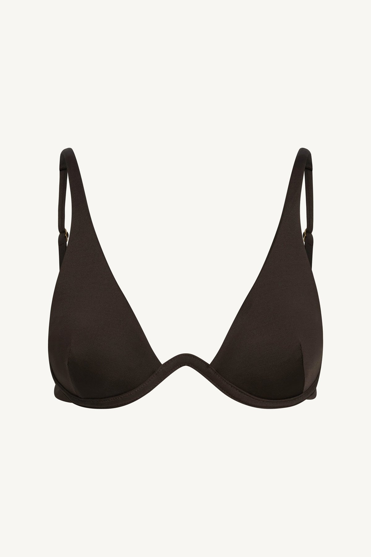 The Maisie Underwire Top combines clean lines with supportive details for a flattering fit. Designed with over-the-shoulder adjustable straps and a tie-back closure, it allows for easy adjustability. Underwire cups with subtle darts provide shape and lift, while removable cups offer customizable coverage. A modern take on a classic underwire style.