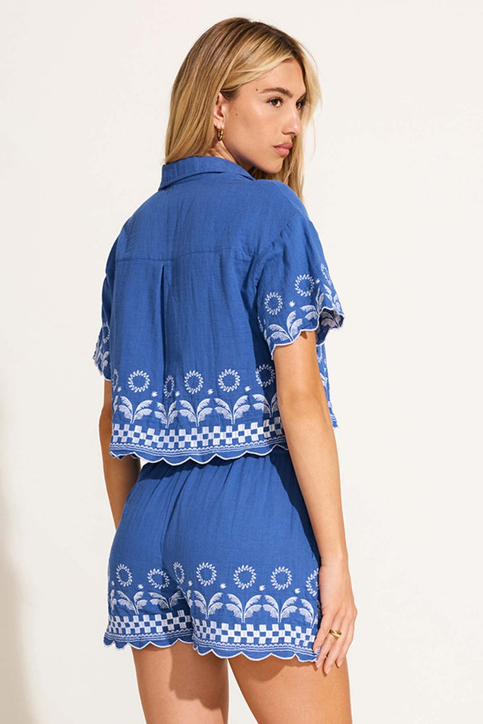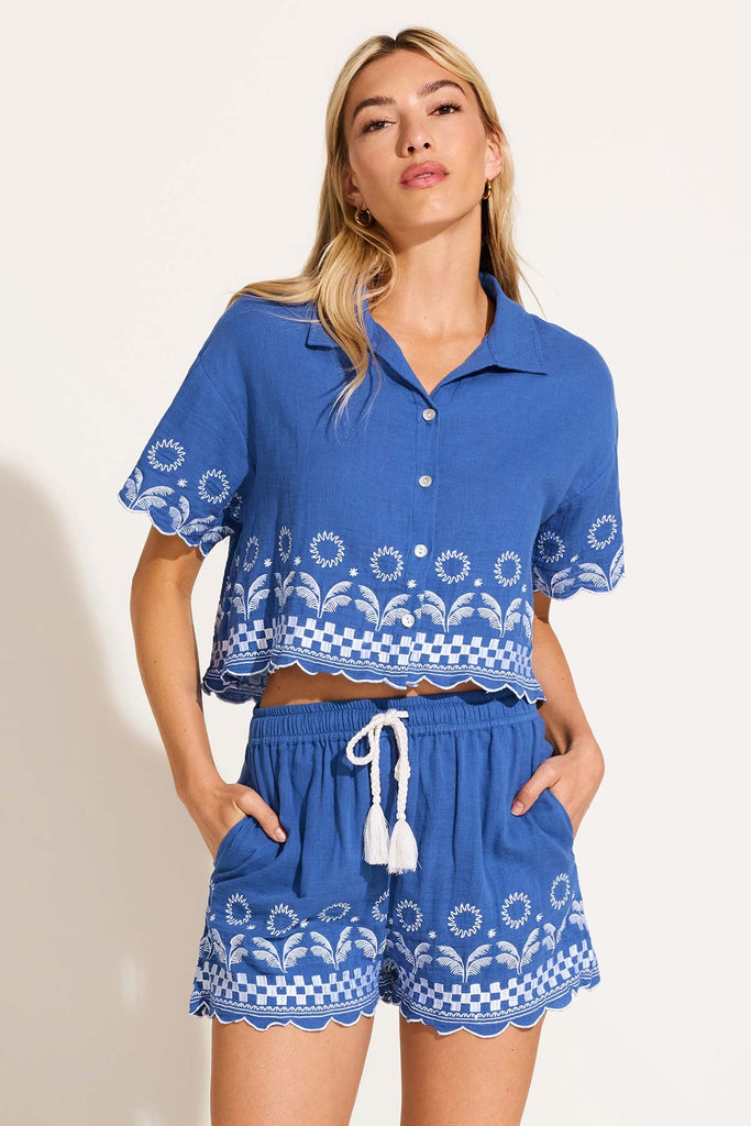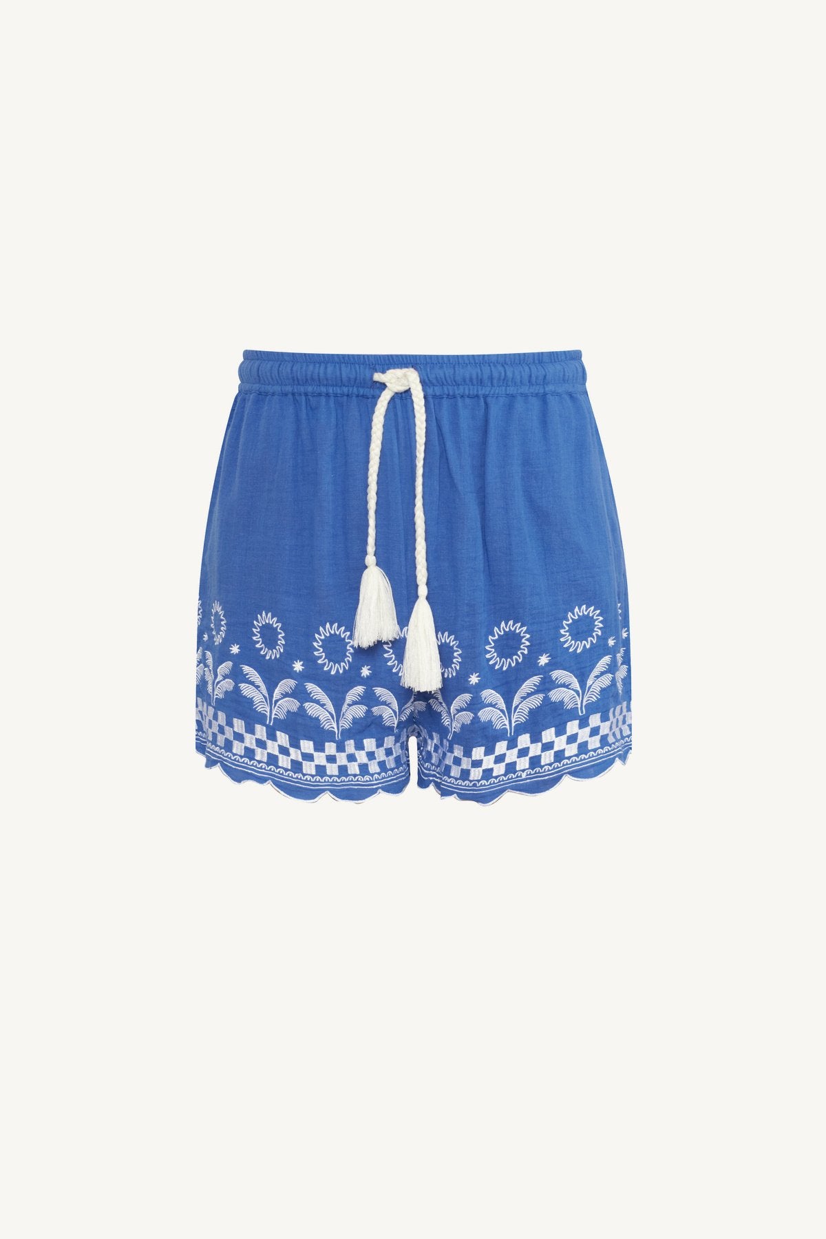 Delicately feminine beachwear. Daya is our organic cotton collection of embroidered beach styles this short features an elastic drawstring waist for an effortless fit, side seam pockets, and contrasting embroidered trim.
