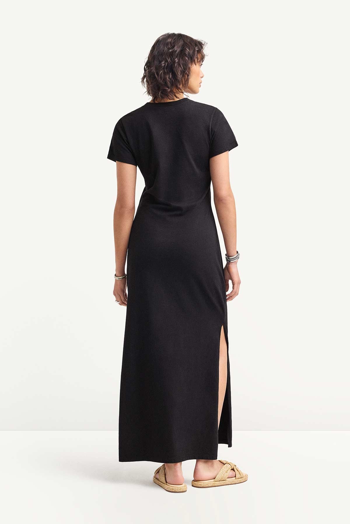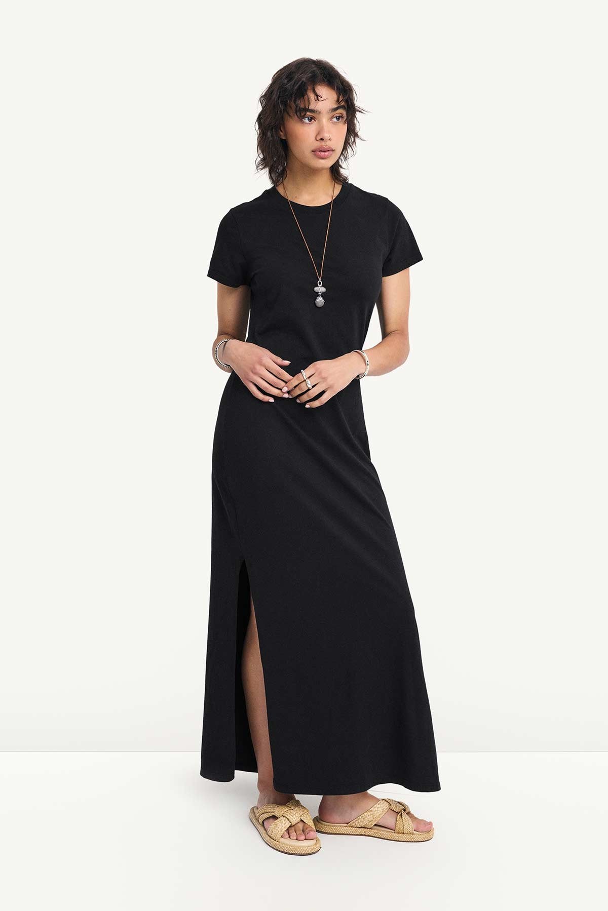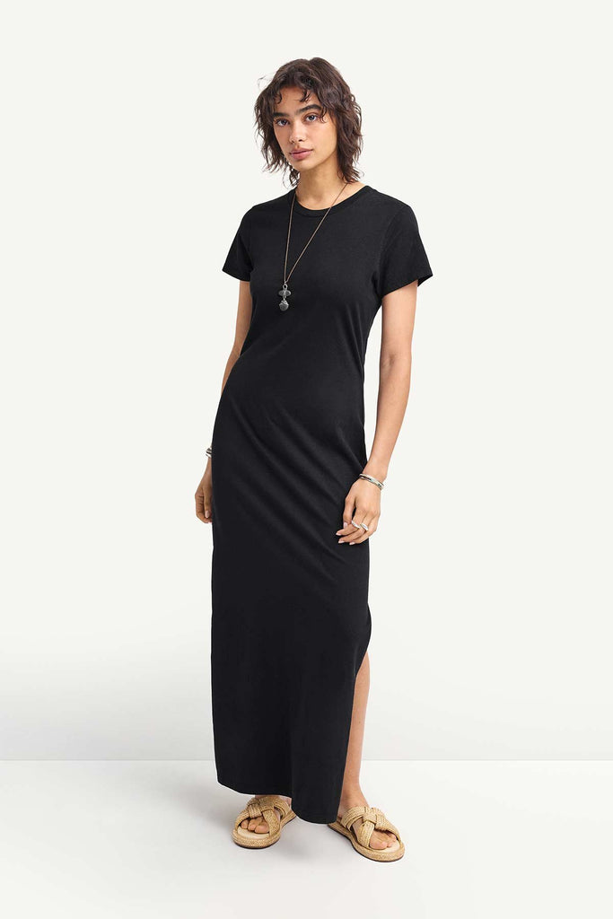 Relaxed yet refined, the Coast Shirt Dress is crafted from soft, thick cotton jersey made with 50% recycled cotton for structure and all-day comfort. Garment-dyed in classic Black, it features clean lines and a maxi length for an effortless one-piece look that moves seamlessly from casual days to laid-back evenings.