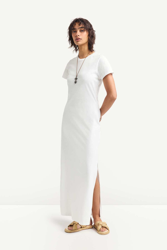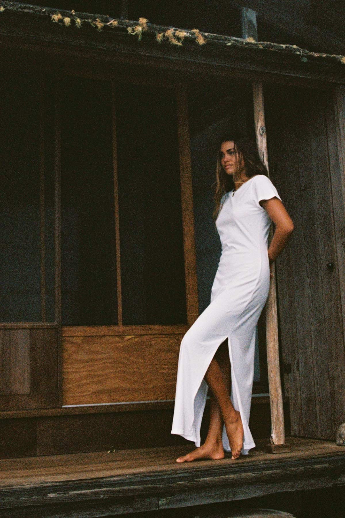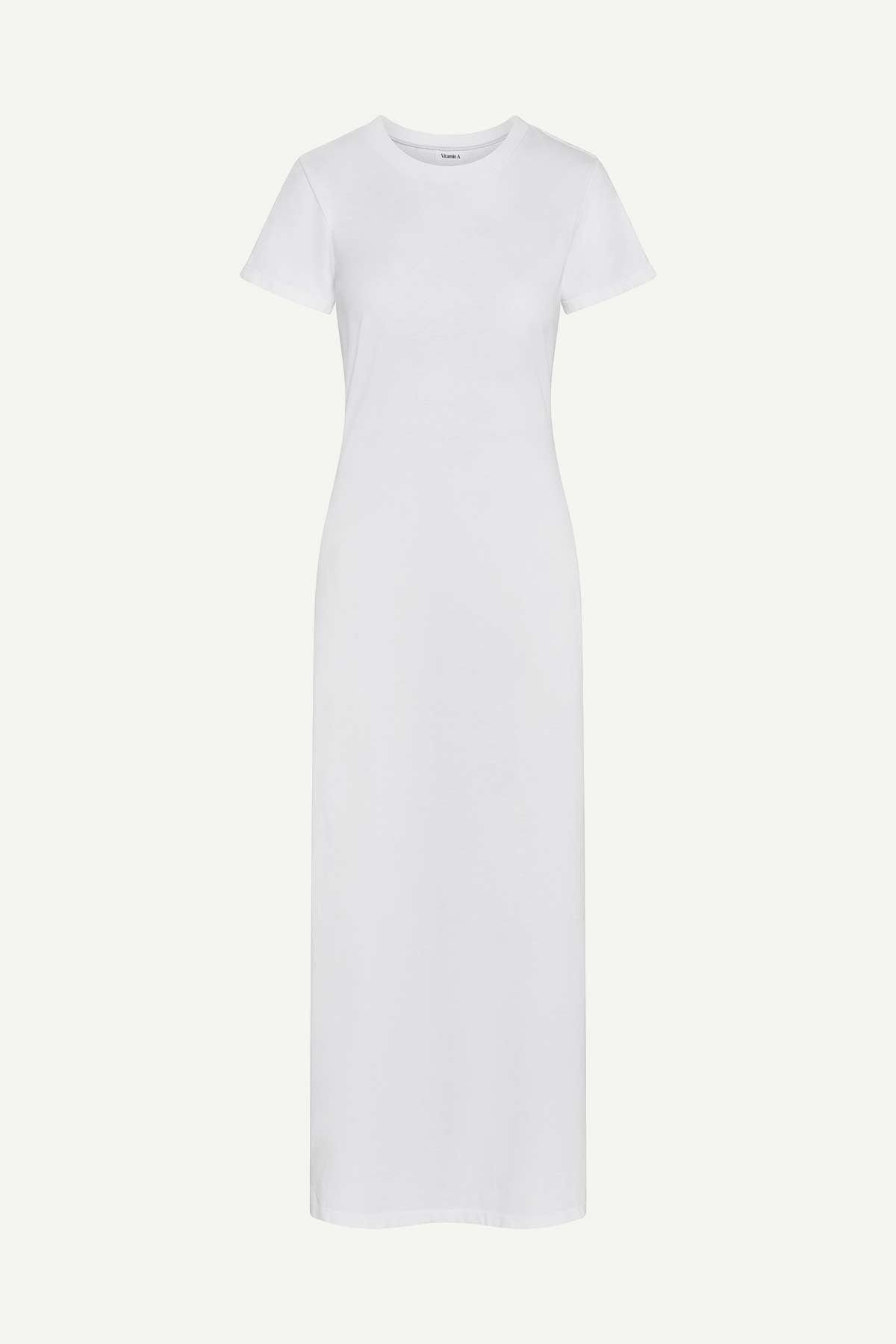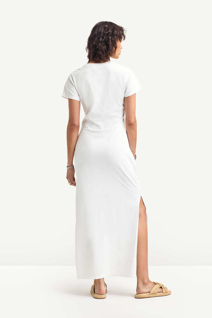 Relaxed yet refined, the Coast Shirt Dress is crafted from soft, thick cotton jersey made with 50% recycled cotton for structure and all-day comfort. Garment-dyed in classic white, it features clean lines and a maxi length for an effortless one-piece look that moves seamlessly from casual days to laid-back evenings.