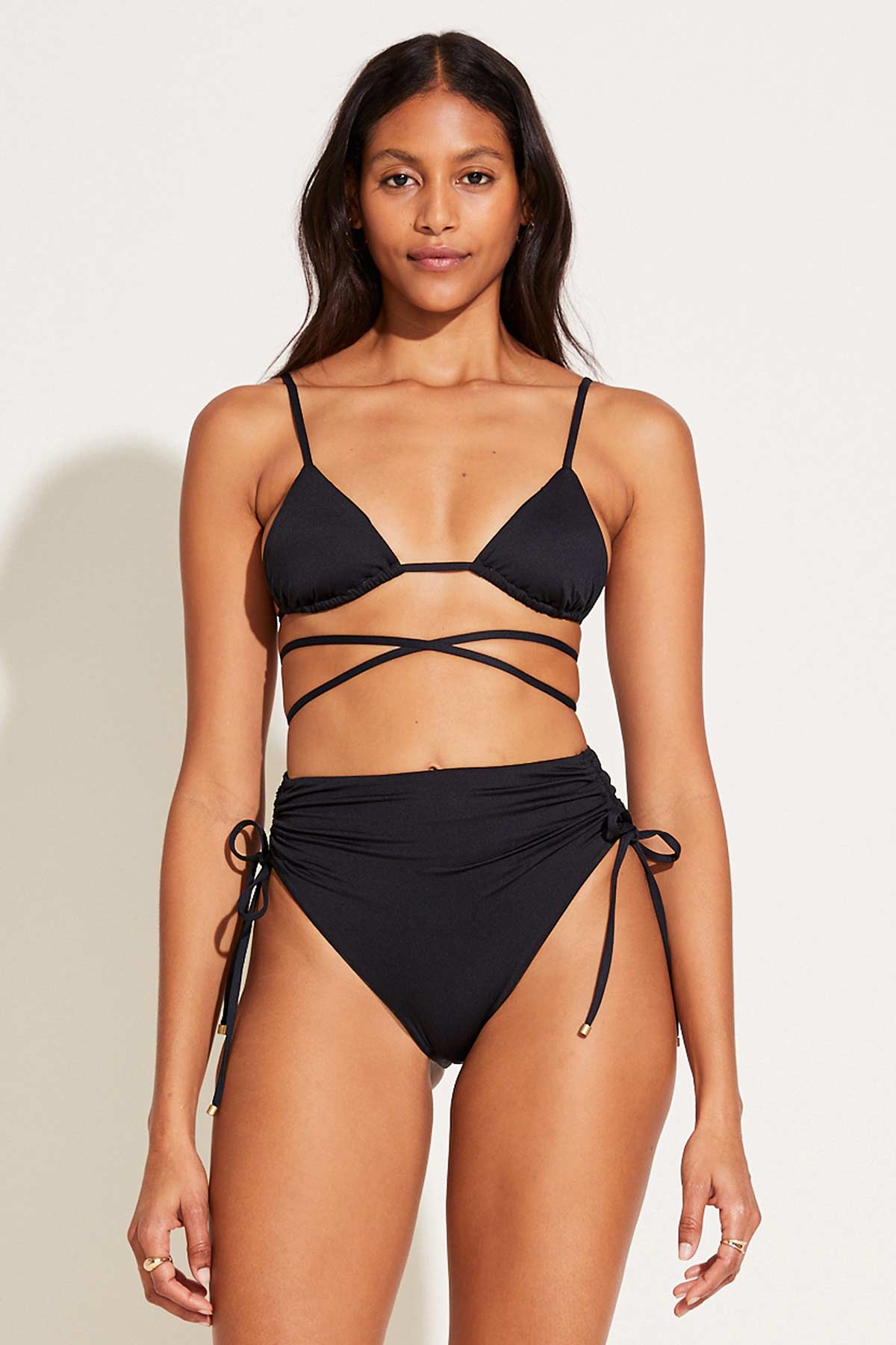 Gemma Ruched High Waist Bottom - Black EcoLux