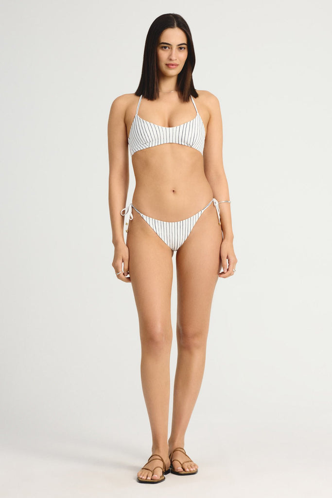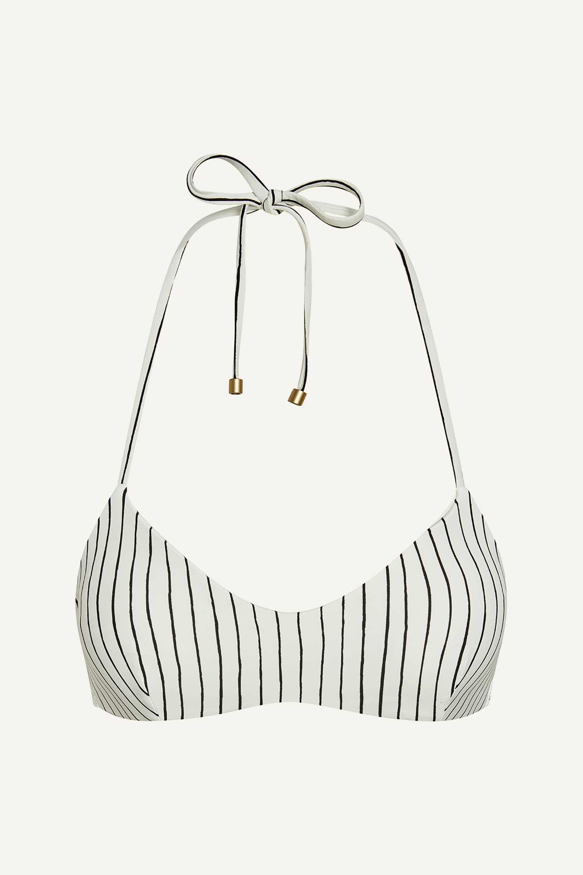 Clean and understated, with flattering lines and a timeless halter tie neck, this scoop bralette bikini top is made from exclusive deadstock fabric.