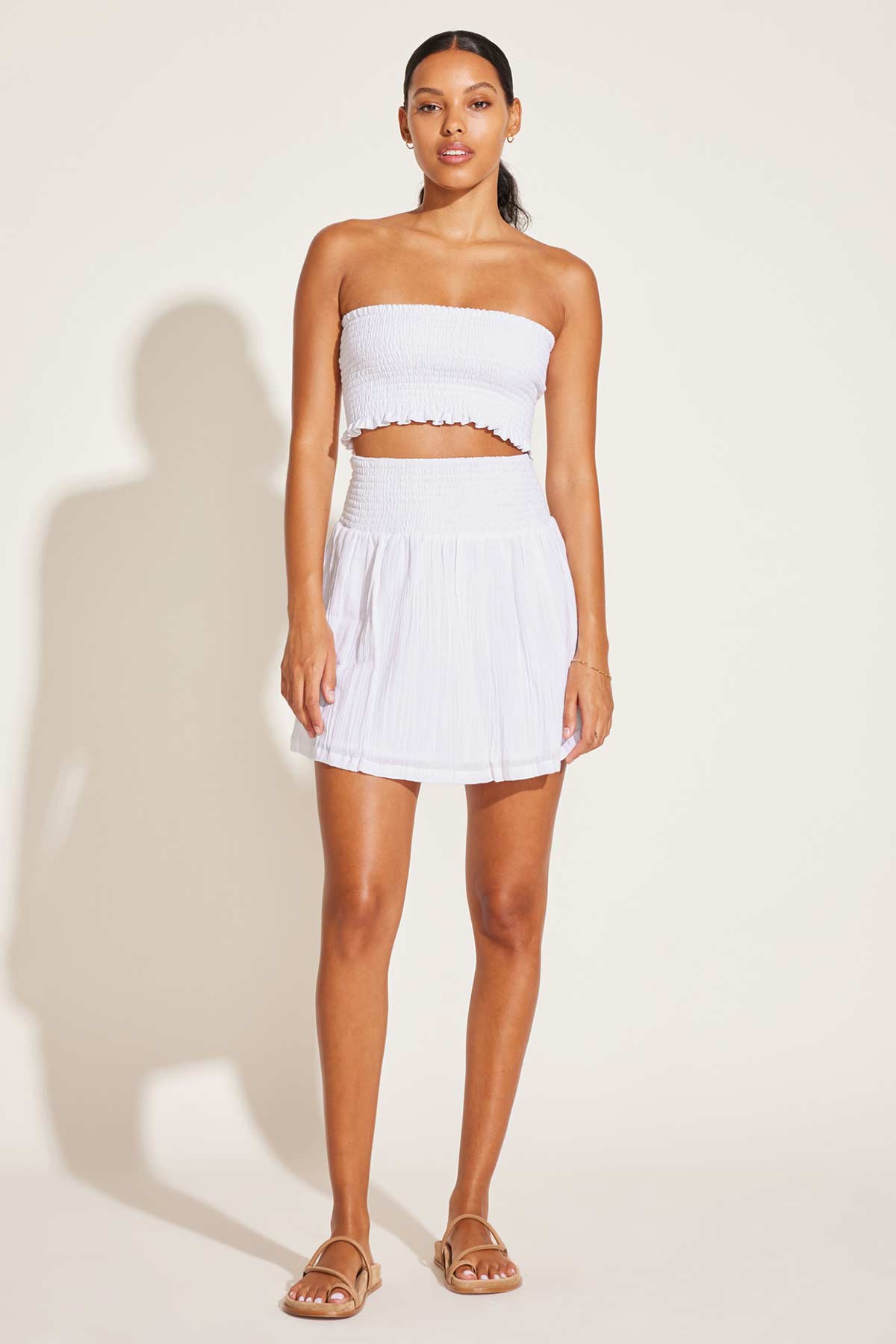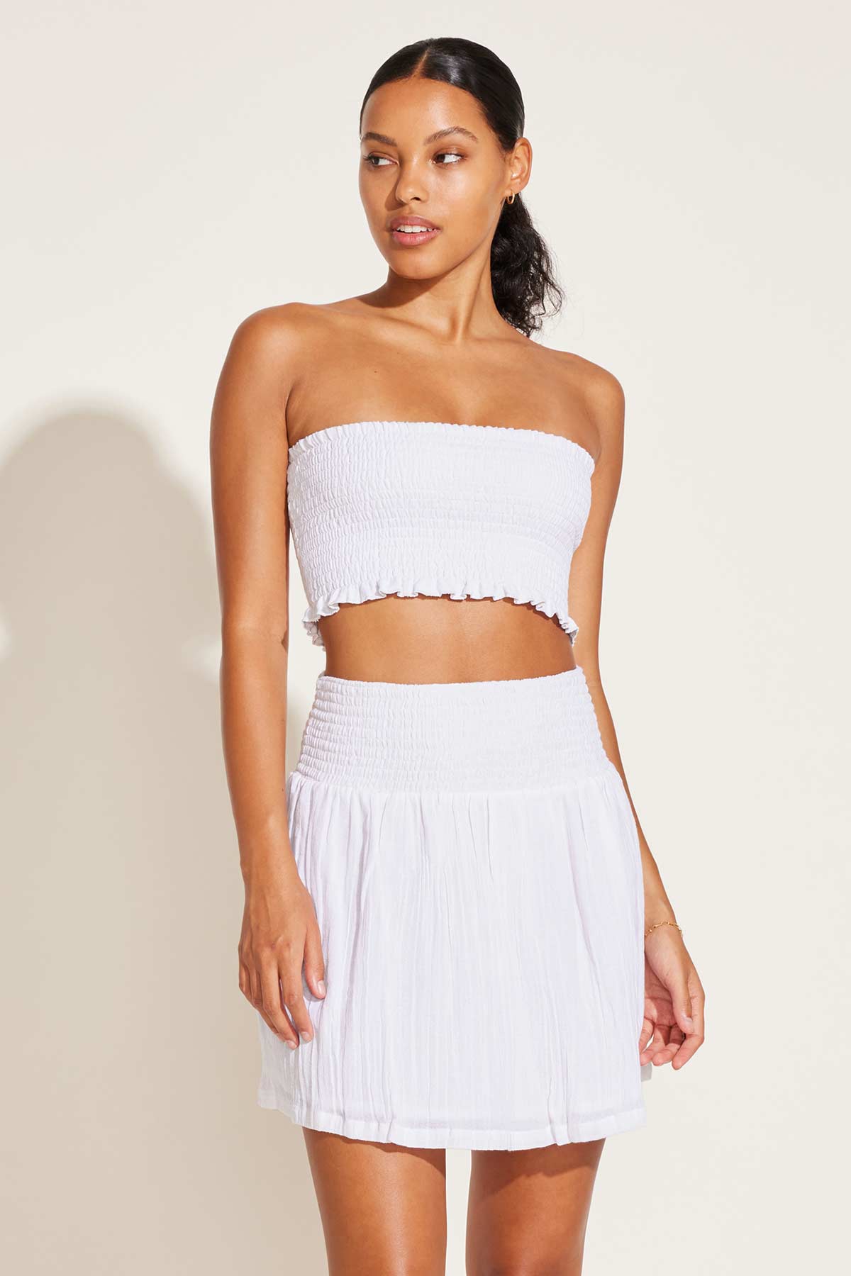 Nya Smocked Bandeau Top - White Crinkle Linen