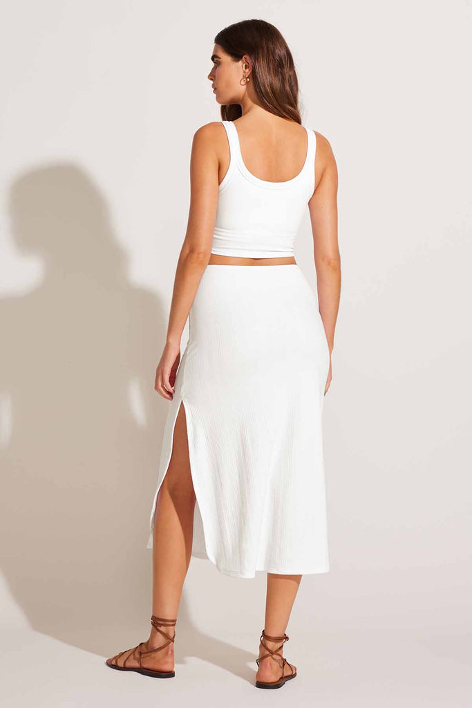 The sleek, white organic skirt that makes getting dressed a breeze.