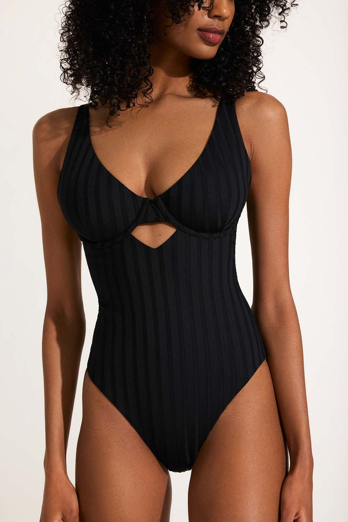 Elle Adjustable Tie Side Bottom - Black EcoLux$98