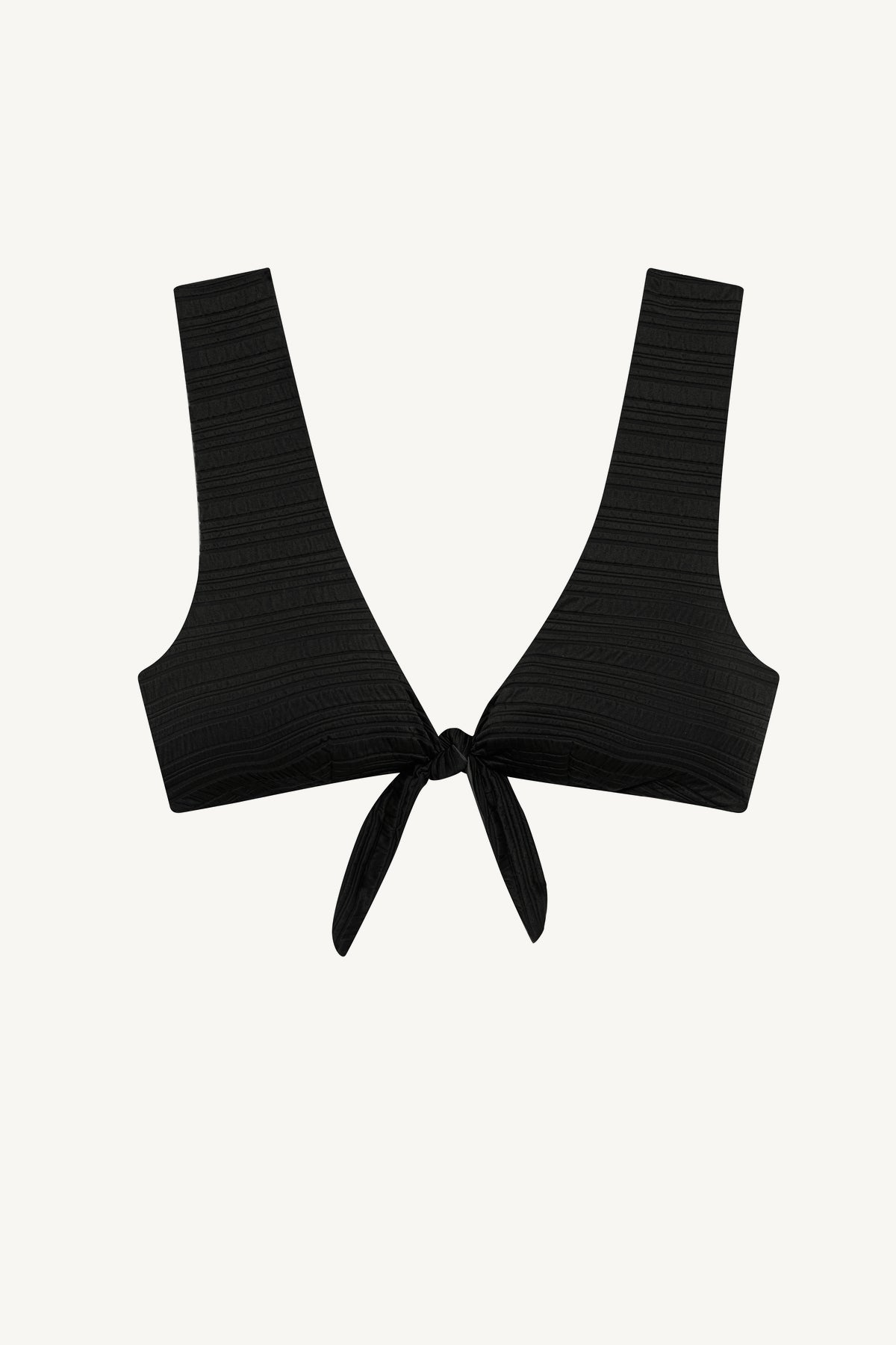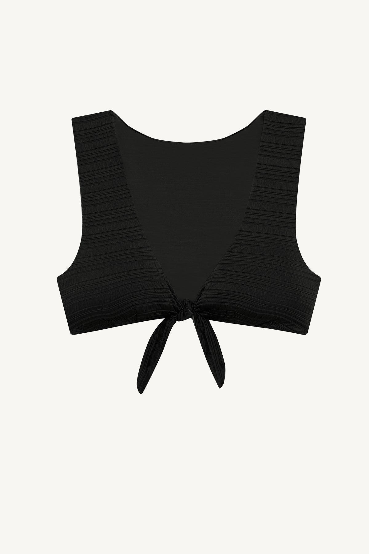 Cassia is the endlessly versatile top to wear from the beach to pre-dinner drinks. A combination bralette and crop top, this front tie bikini is adjustable for your bust size and extra supportive. Features darts at the bust for a seamless shape.