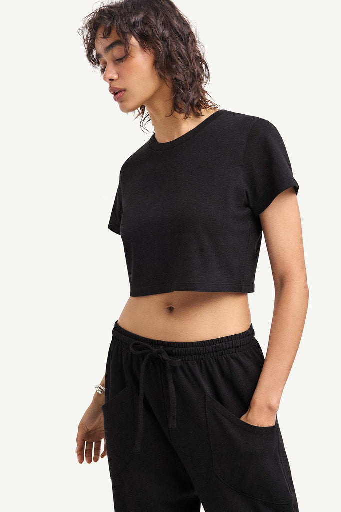 Soft structure meets everyday ease. The Coast Jogger Pant is crafted from thick cotton jersey with 50% recycled cotton, garment-dyed in classic Black for a sleek, lived-in look and feel. Designed with a mid rise, elastic waist, and front patch pockets, it's finished with a cotton drawcord for adjustable comfort. Made to move with you on slow days, busy days, and everything in between.
