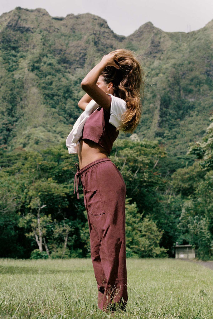 Soft structure meets everyday ease. The Coast Jogger Pant is crafted from thick cotton jersey with 50% recycled cotton, garment-dyed in a rich Crushed Berry hue for a lived-in look and feel. Designed with a mid rise, elastic waist, and front patch pockets, it's finished with a cotton drawcord for adjustable comfort. Made to move with you on slow days, busy days, and everything in between.