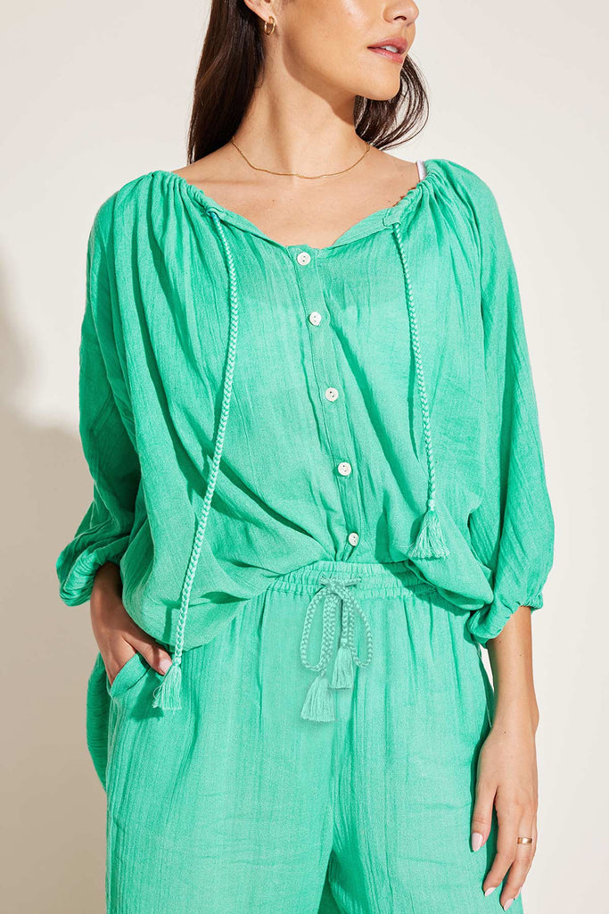 Costa Shirt Dress - Seafoam Crinkle Organic Cotton