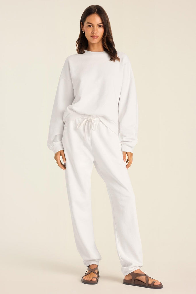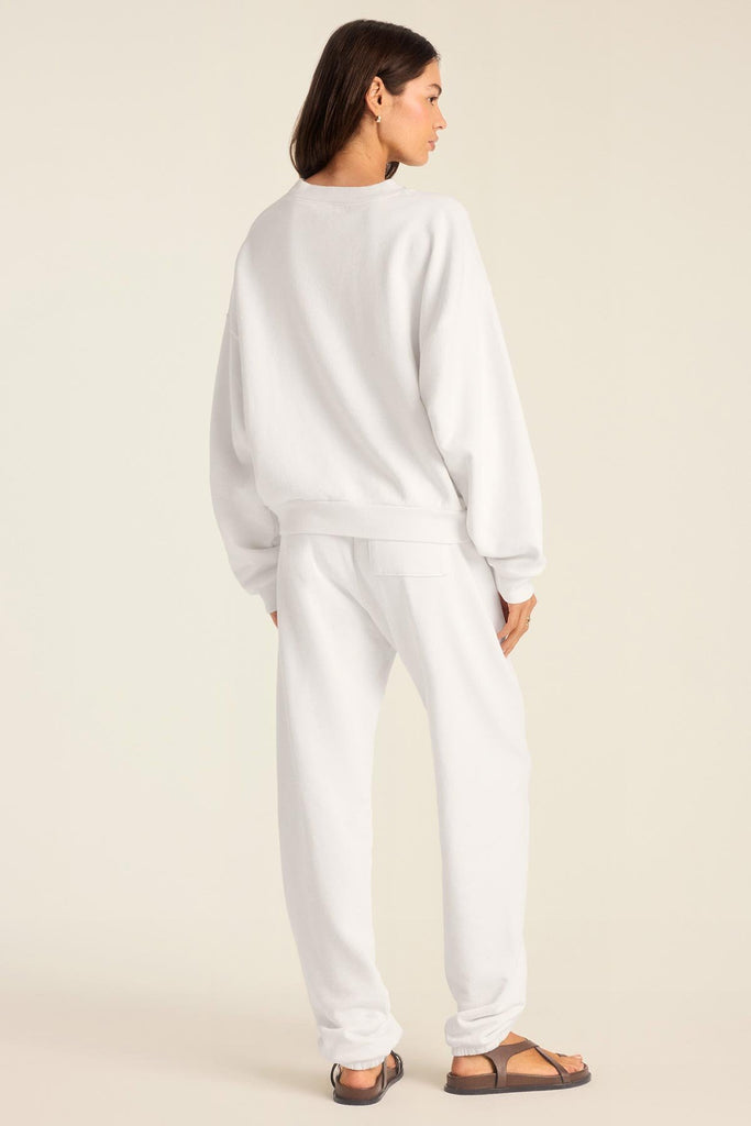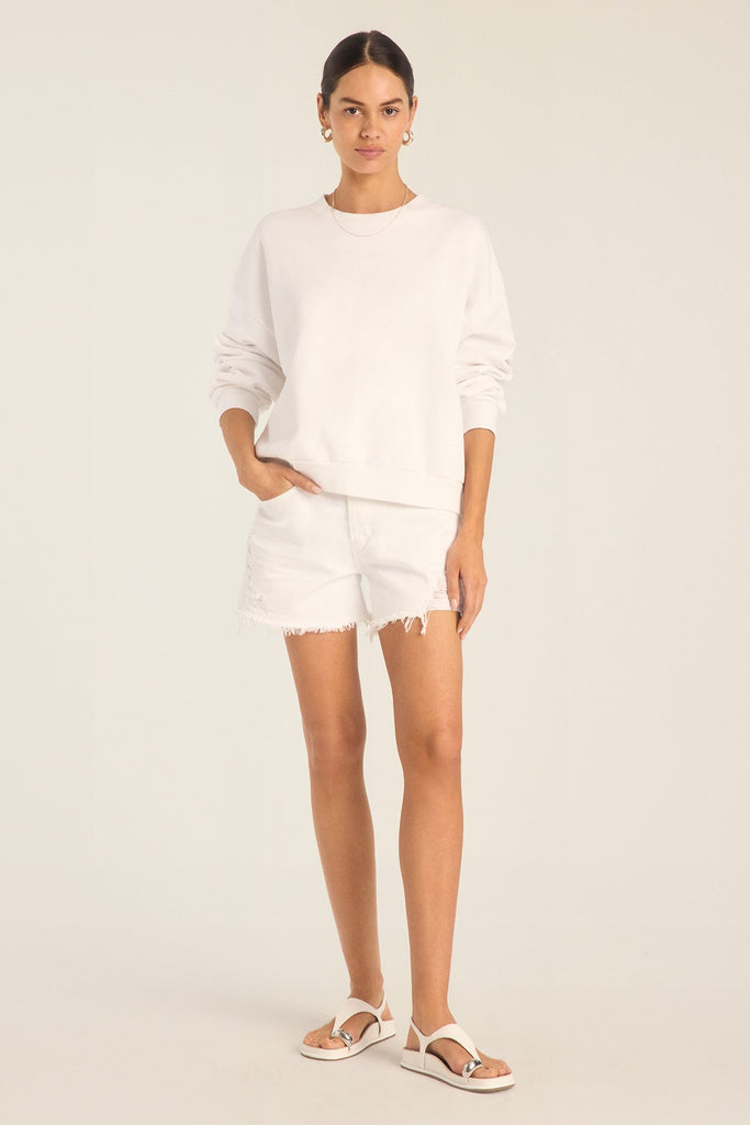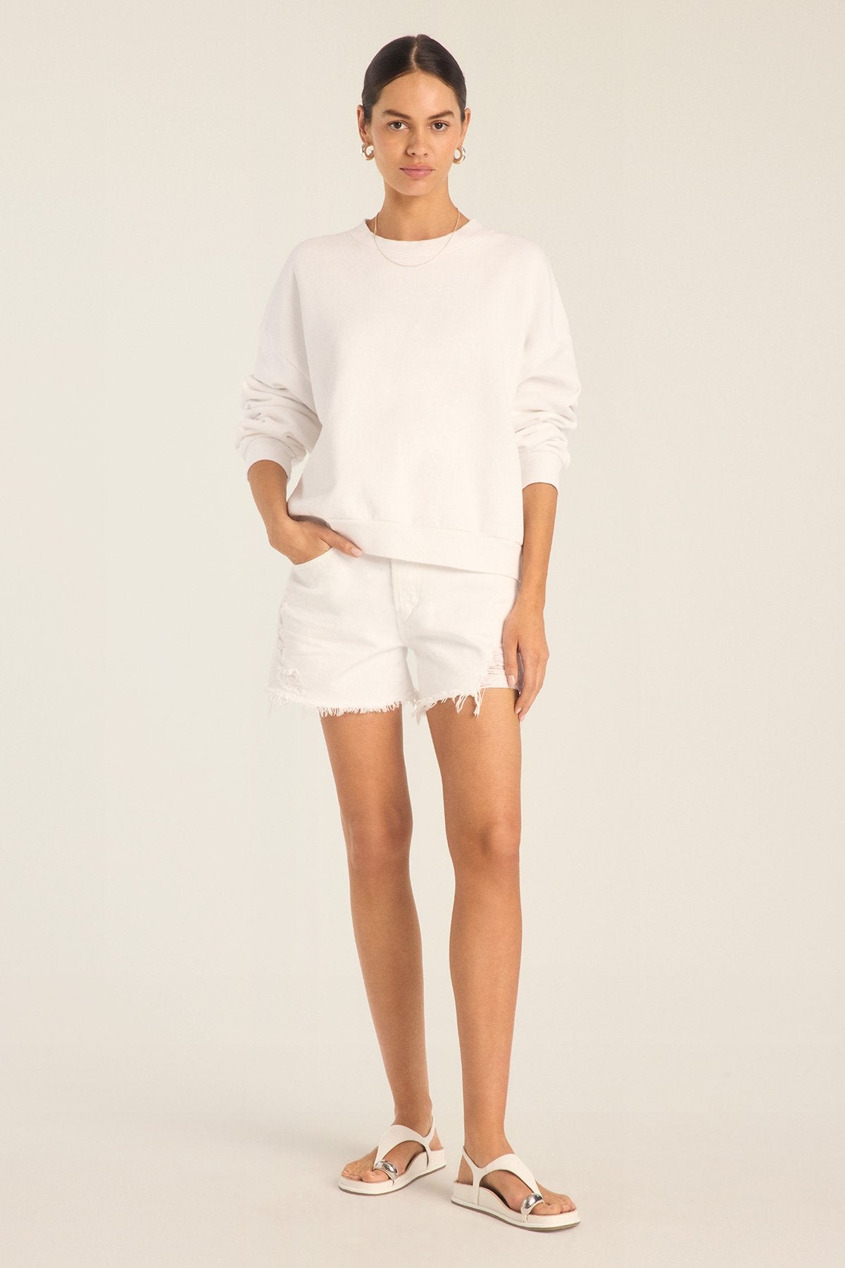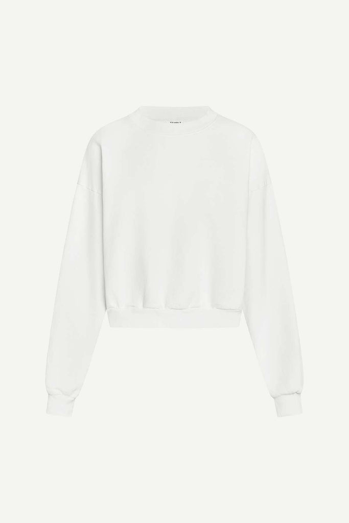 A team favorite . This crewneck is cropped at the waist for a flattering spin on a laid-back silhouette. Features ribbed cuffs, hem, and neckline.