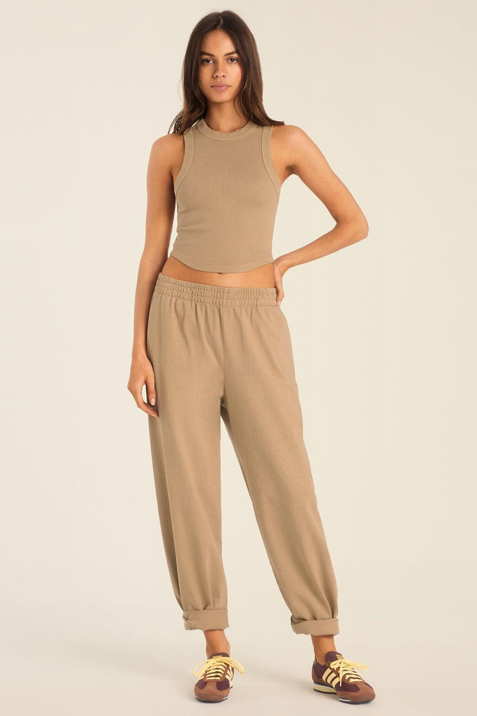 Daybreak Essential Crop Tank - Latte Cotton Rib