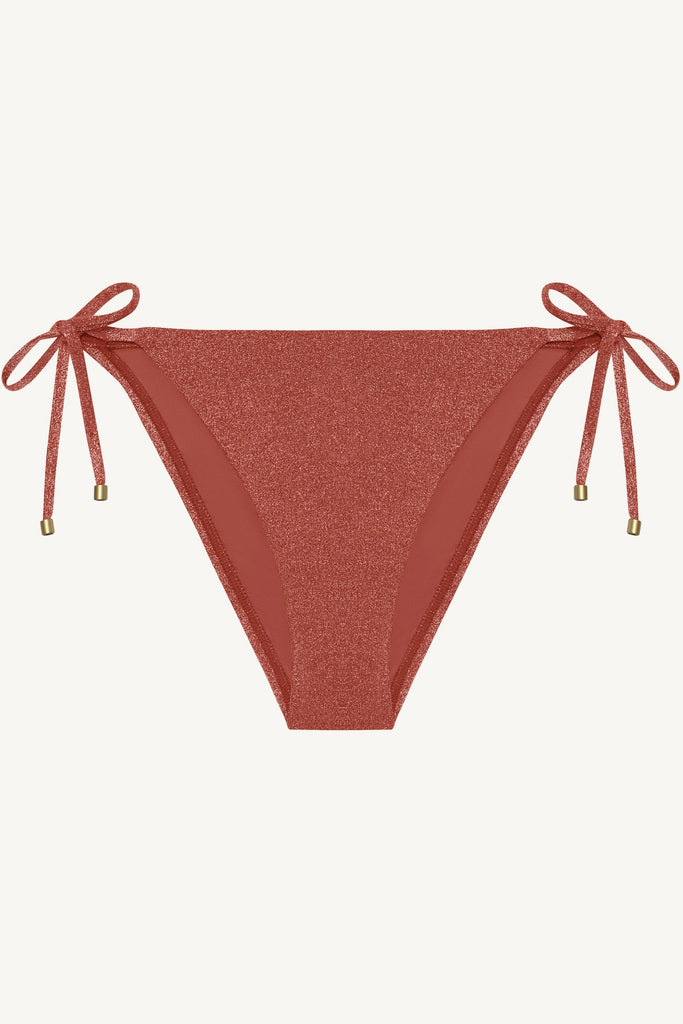A classic string bikini bottom. Cut not too low and not too high, it's designed to stay in place with tie sides for adjustability + classic coverage.