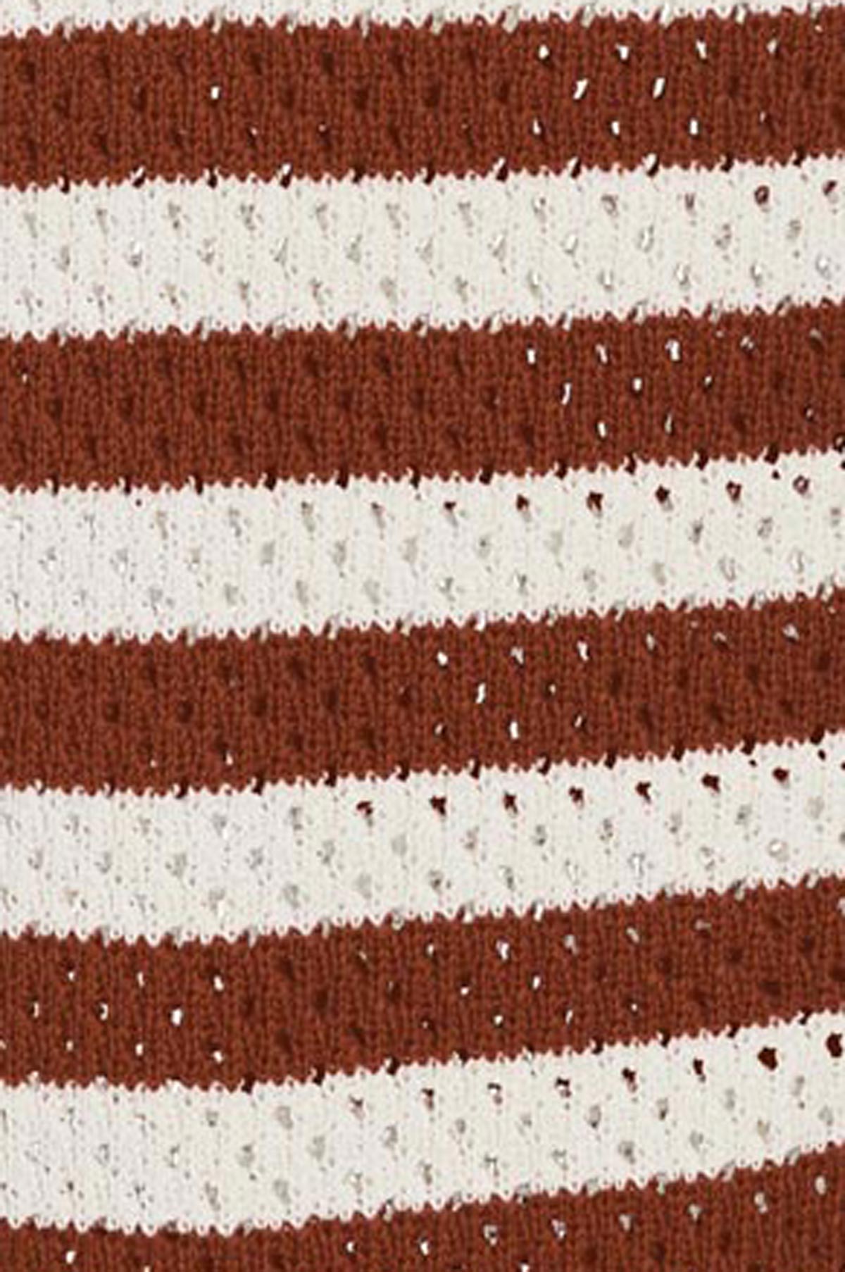 This piece is crafted using recycled polyester yarns made from post-consumer plastic bottles.
