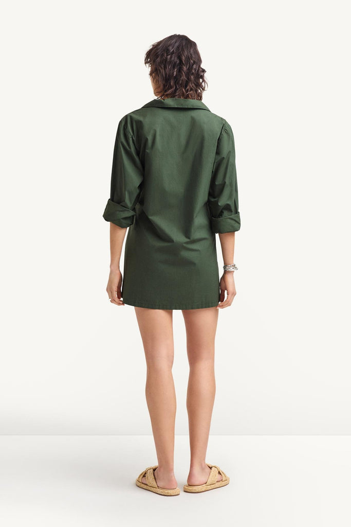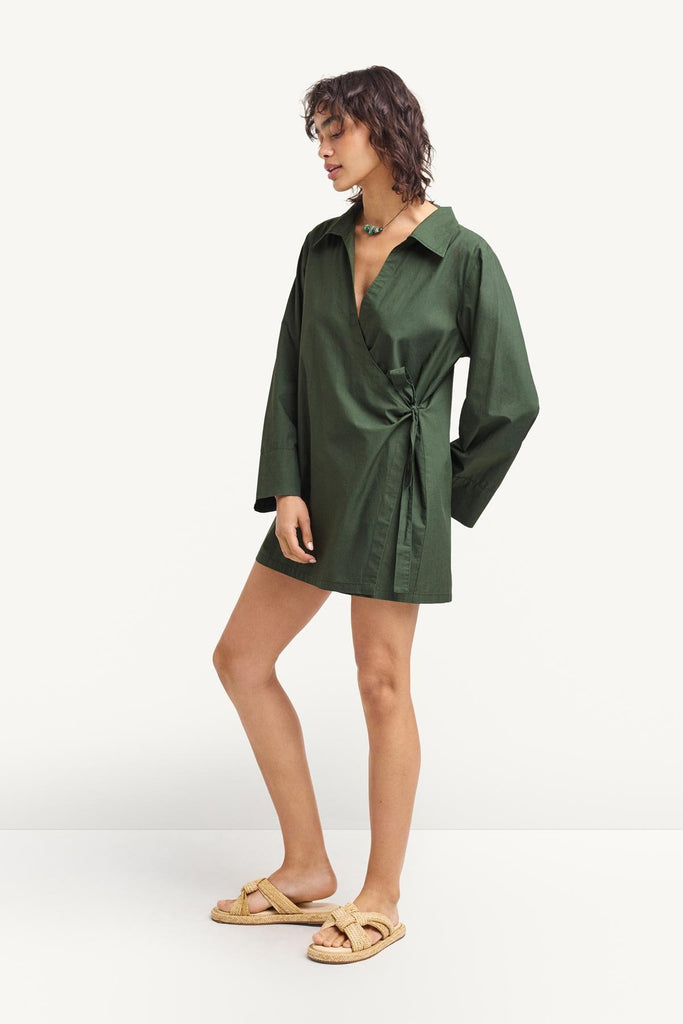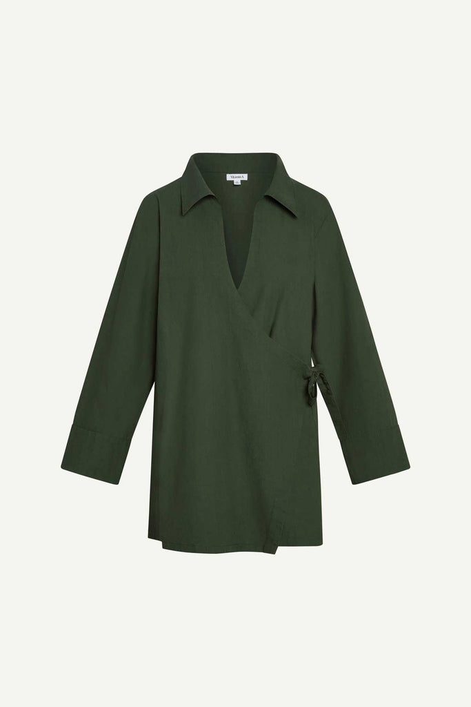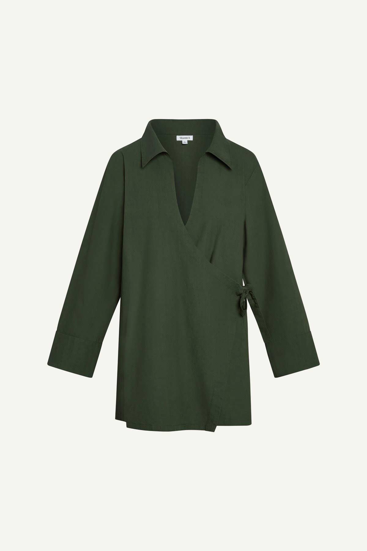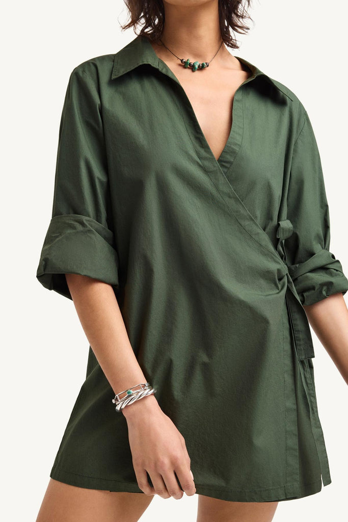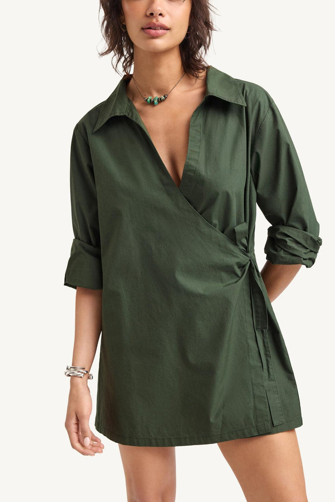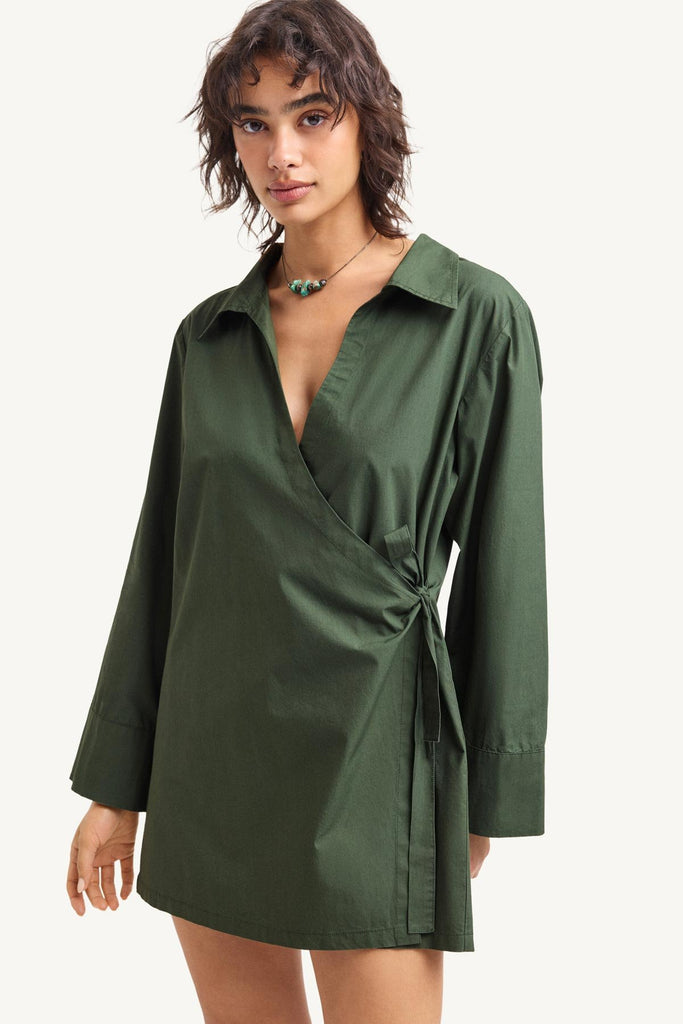 Crisp, clean, and endlessly wearable, the Elodie Wrap Dress is crafted from 100% organic cotton poplin for a lightweight, breathable feel. Designed with a classic collar, a flattering mini length, and an adjustable wrap tie, it blends structure with ease for a fit that feels just right. Effortless on its own or layered for seasonal versatility.