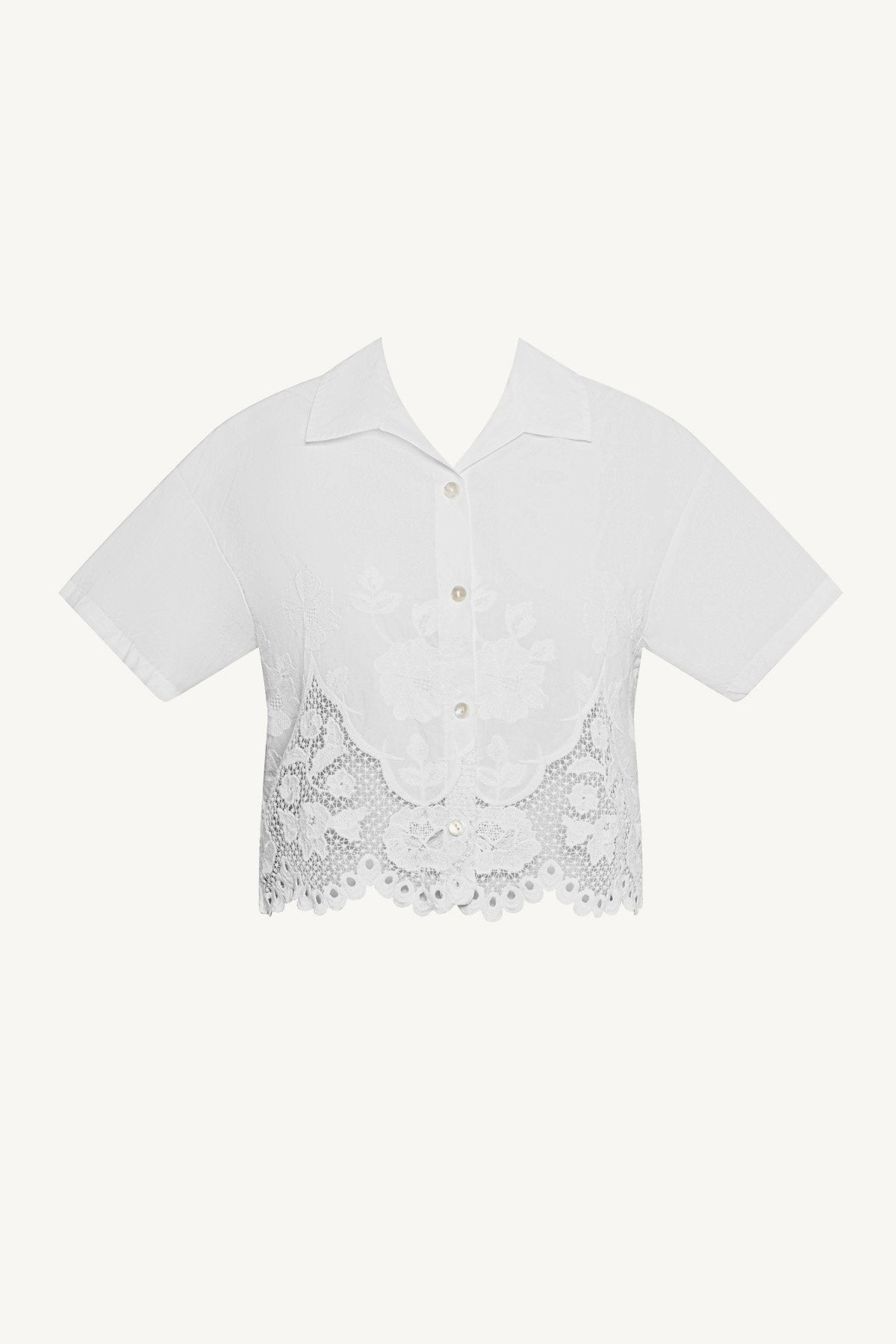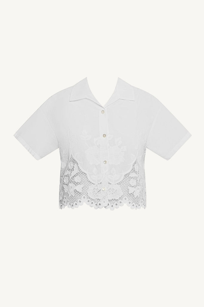 Flora Cropped Shirt - White Beachside Broderie