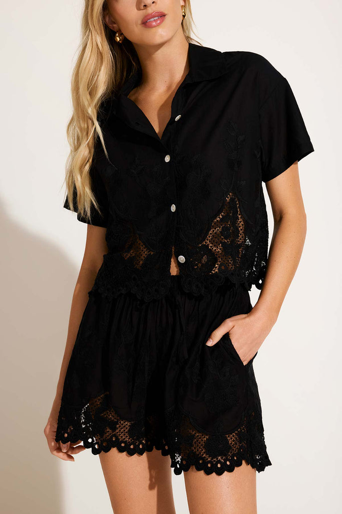 Inspired by vintage beachwear, Flora is a 100% Organic Cotton wide leg drawstring short—a tailored take on the Flora Pant. With a casual fit, embroidered broderie detail and a perfect match with the Flora Cropped Shirt, this is beach attire at its finest.