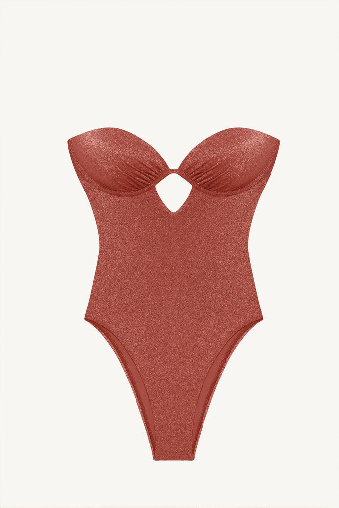 Mabel Underwire Bandeau One Piece - Pink Metallic
