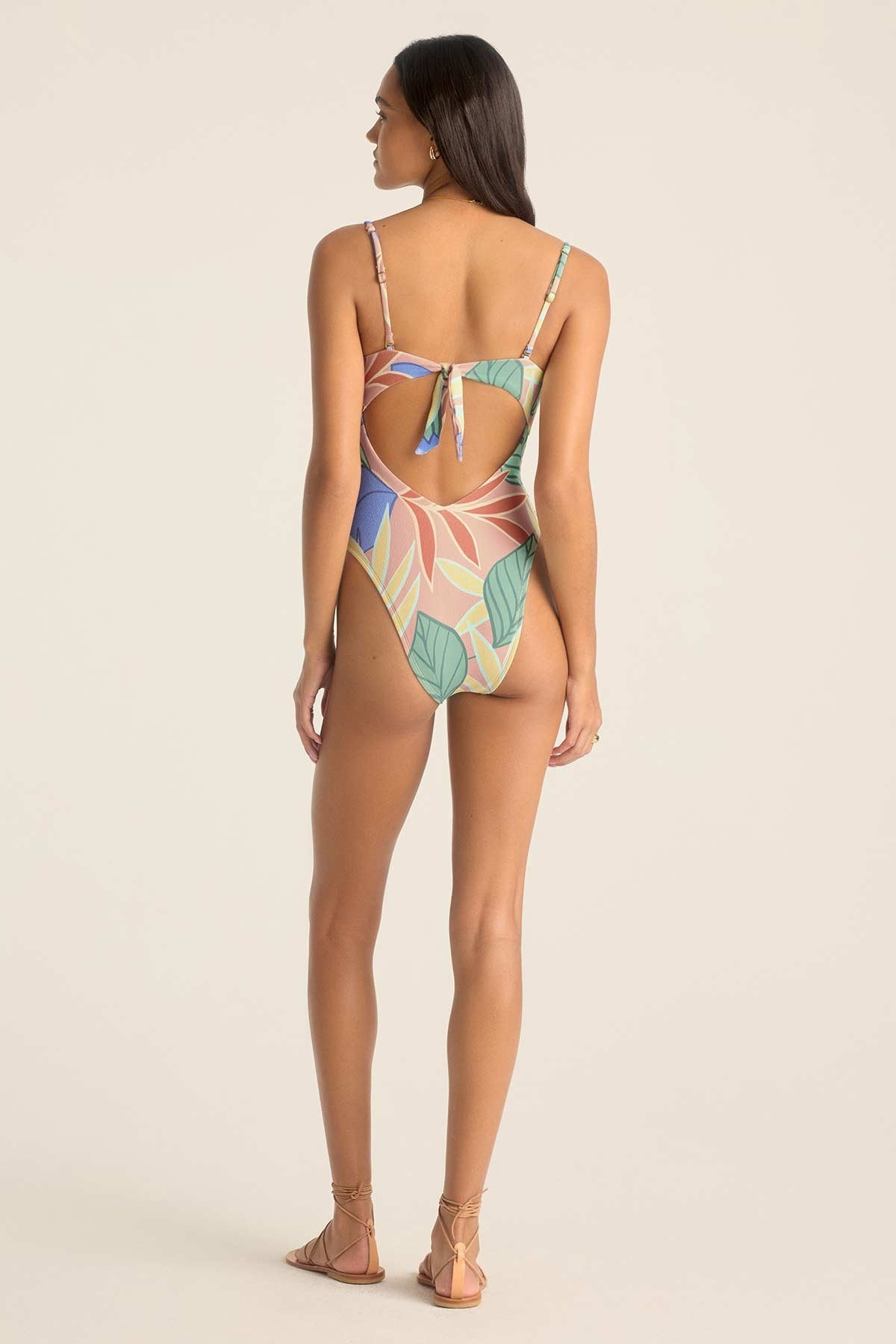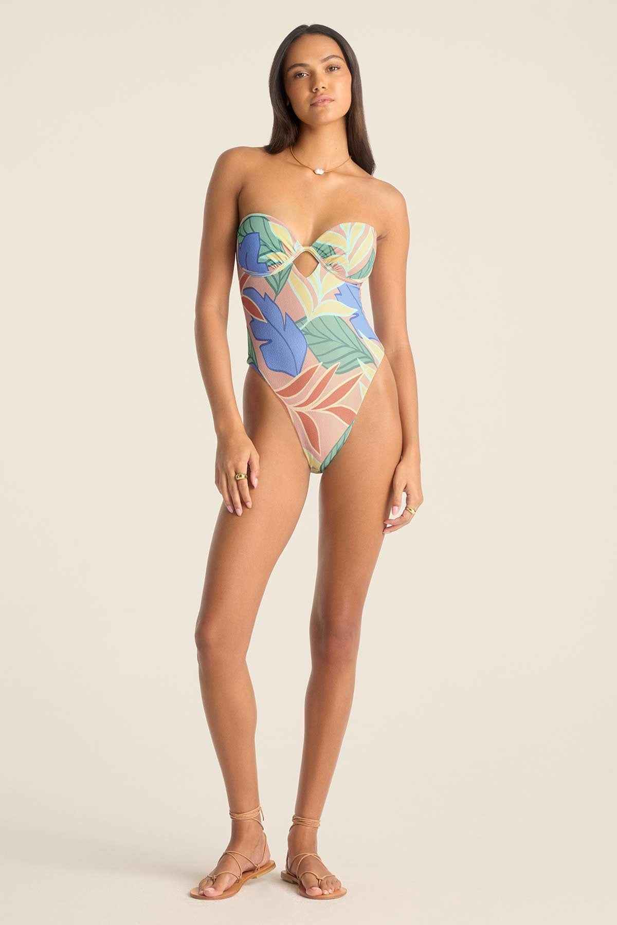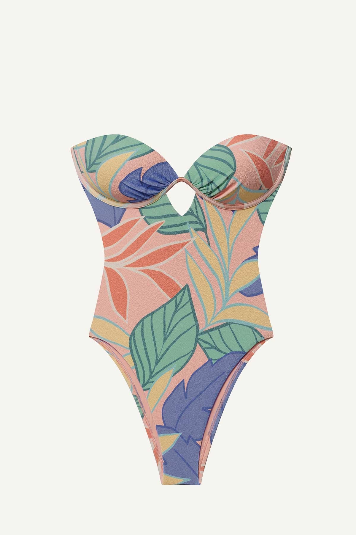 Mabel Underwire Bandeau One Piece - Retro Jungle Crepe Texture