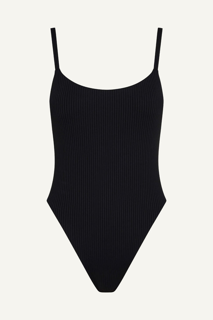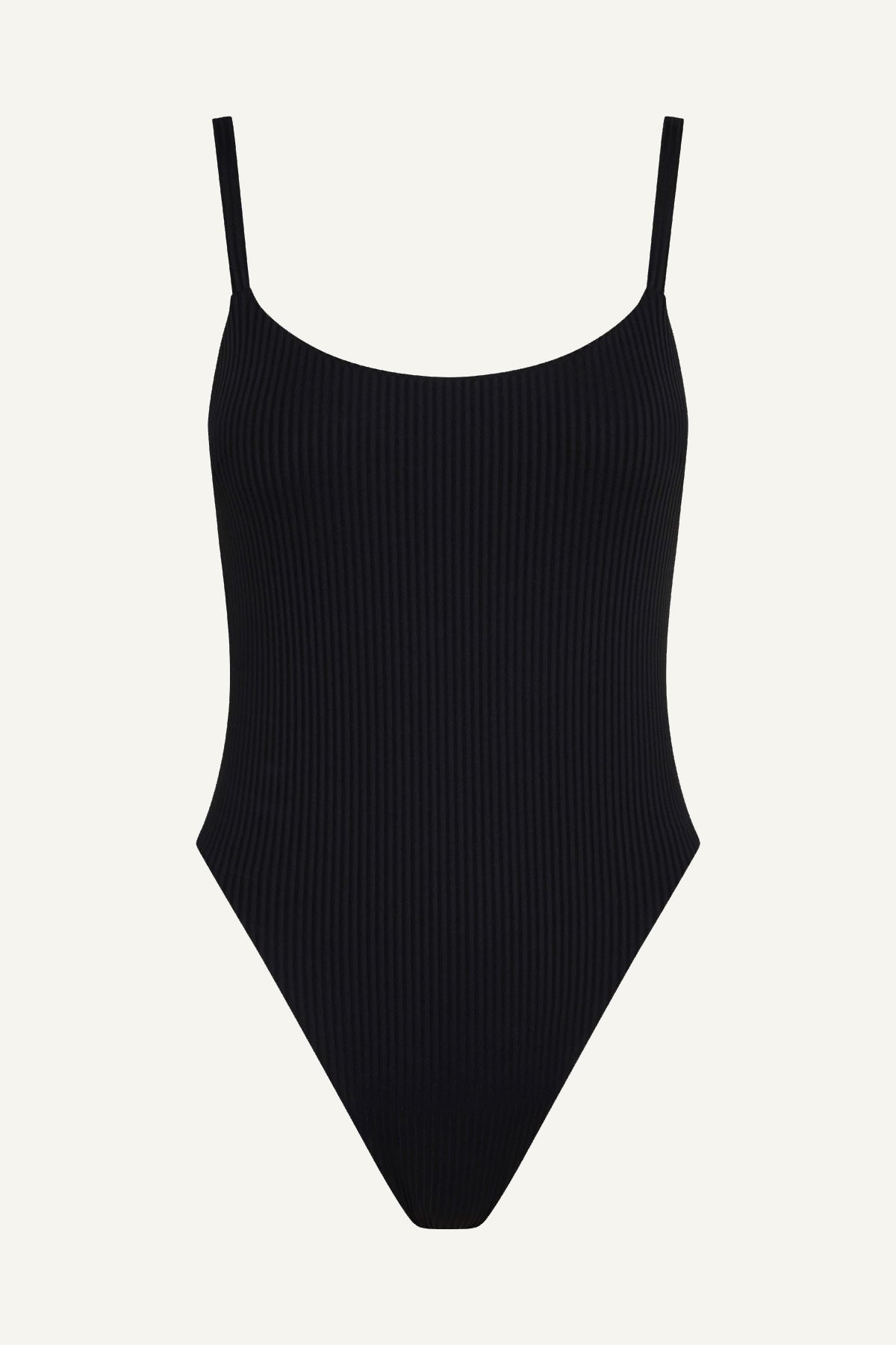 The Nova One Piece features a clean scoop neckline, classic coverage, and slender over-the-shoulder straps. Designed for minimal fuss and timeless versatility—perfect for poolside lounging or pairing with a sarong for a day in the sun.