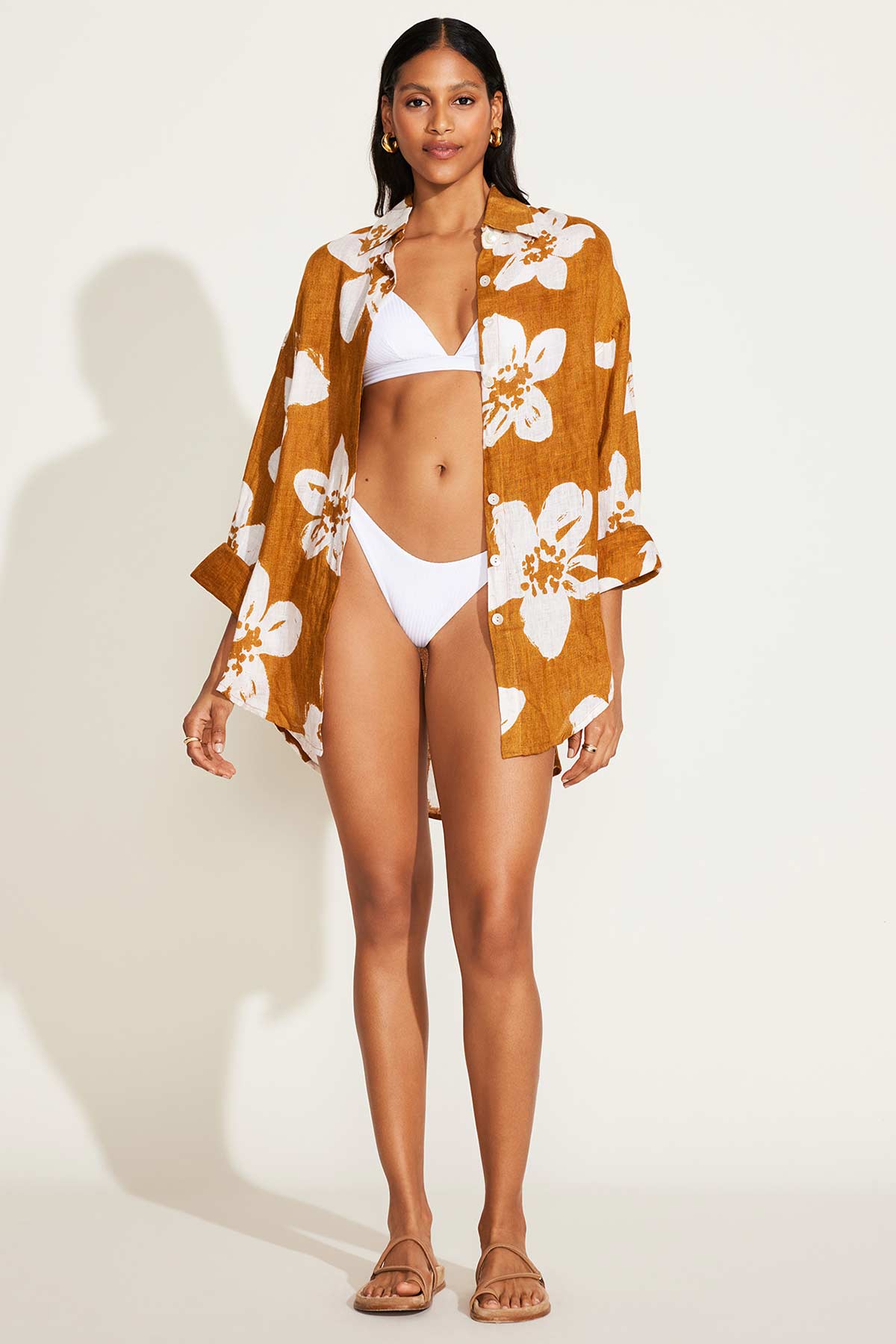 Playa Linen Boyfriend Shirt - Saffron Bloom EcoLinen