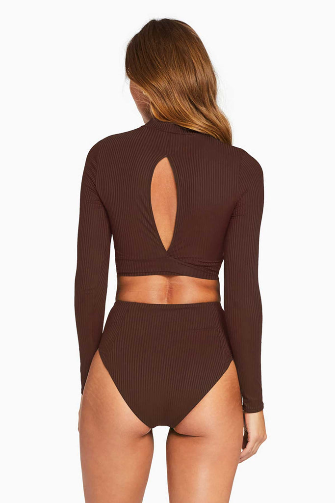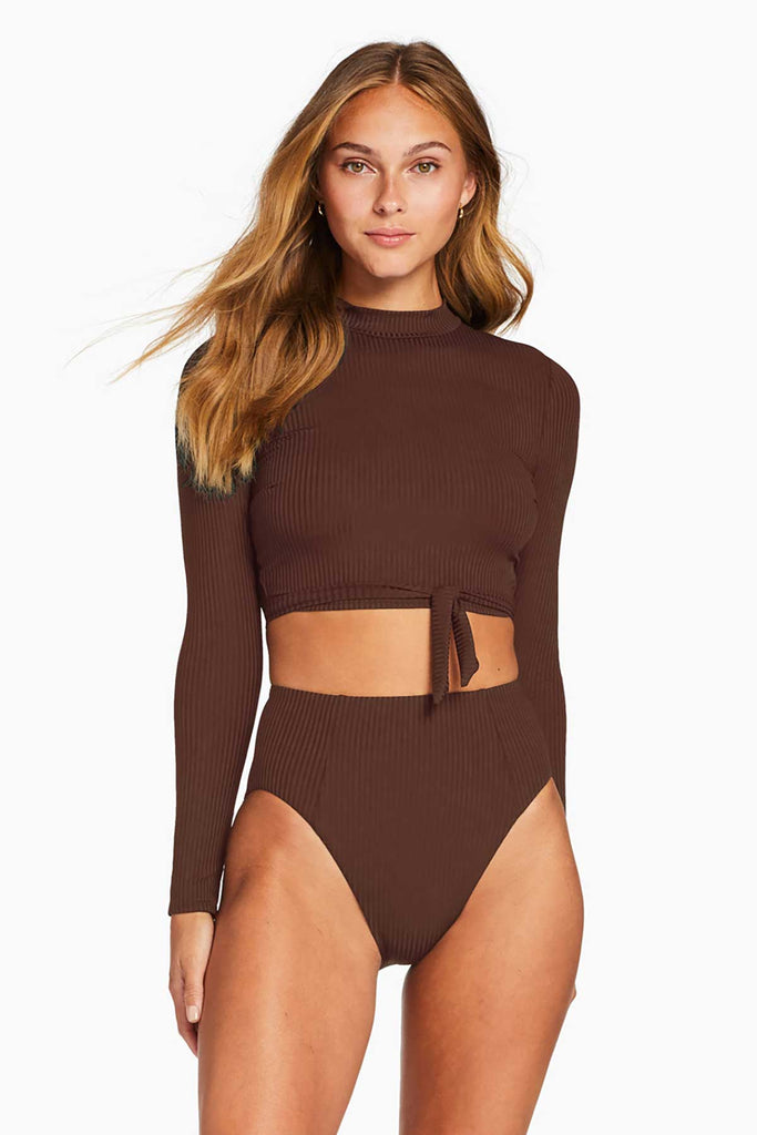 Made from EcoRib - a sexy, stretch-ribbed swim fabric made from nylon fabric scraps. It's lightweight, breathable and form flattering. Our EcoRib fabric is textile crafted by a mechanical regeneration system that saves .63 liters of oil and 33 liters of water per meter of fabric. Sustainably made in California. In our mission to cut plastic, this product comes in recyclable packaging.