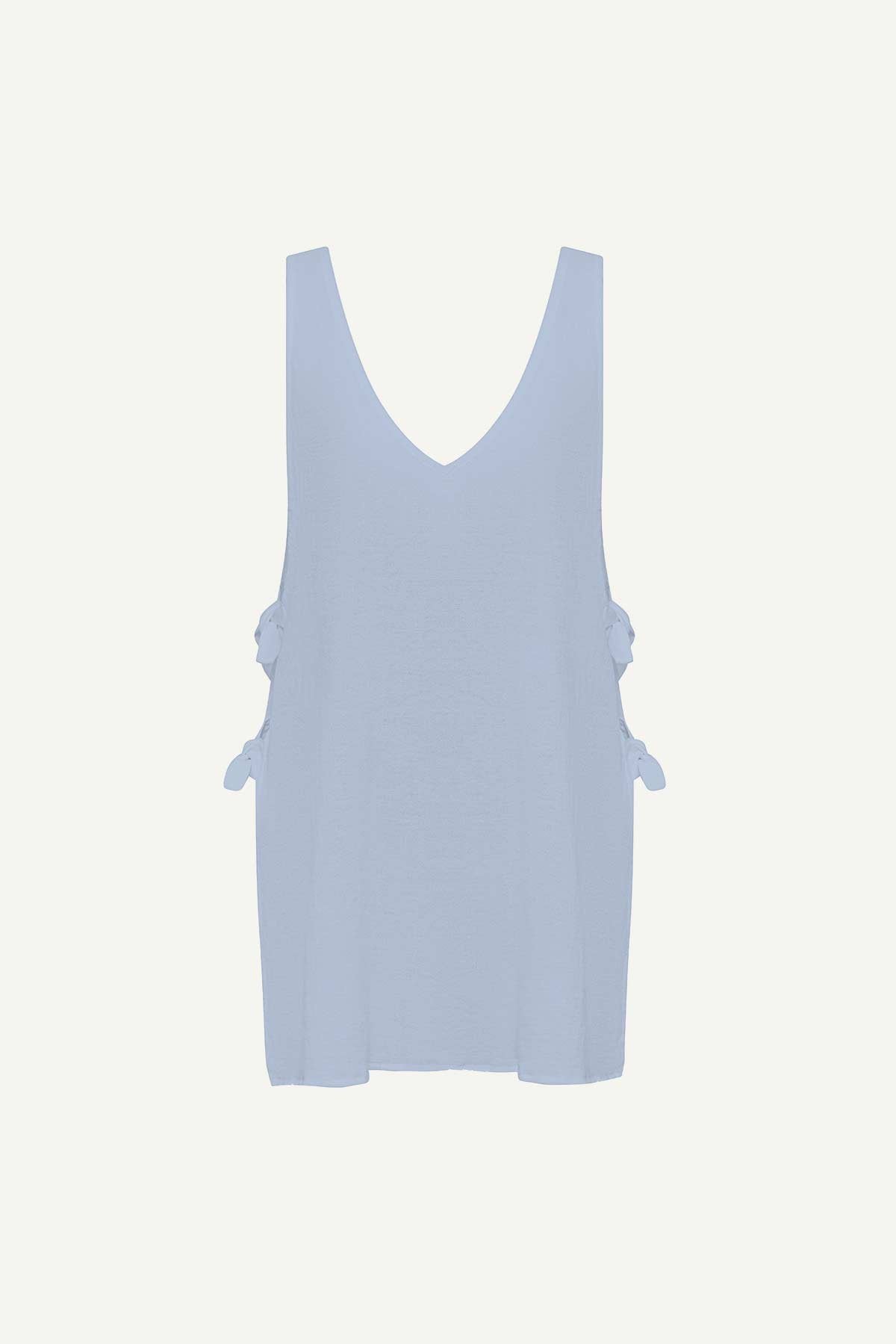 This pastel blue hue is crafted from a blend of the finest flax linen and GOTS certified organic cotton fibers with an effortless crinkle texture throughout.