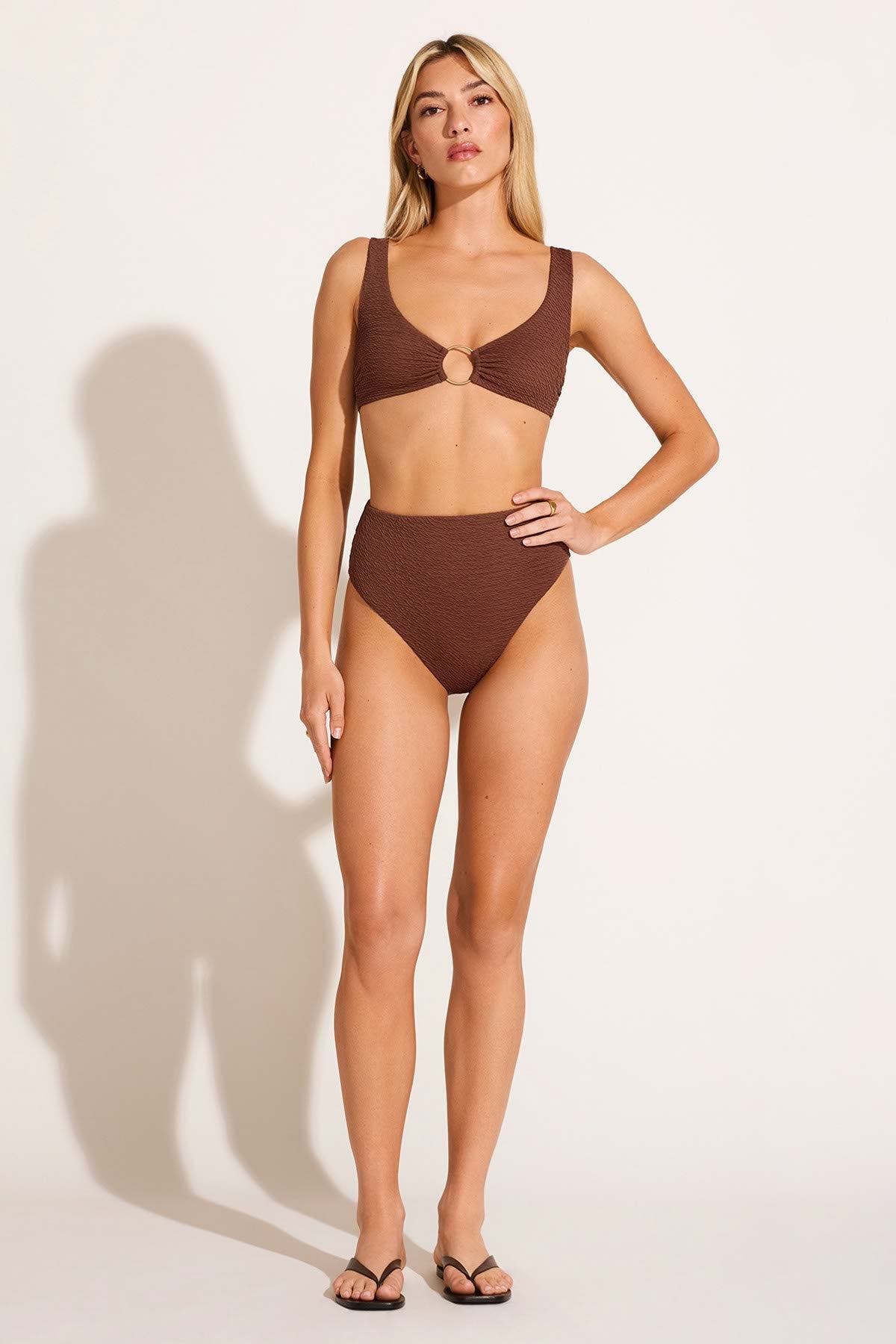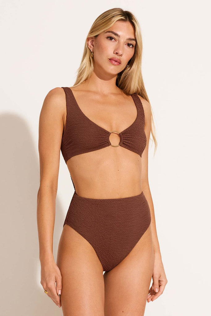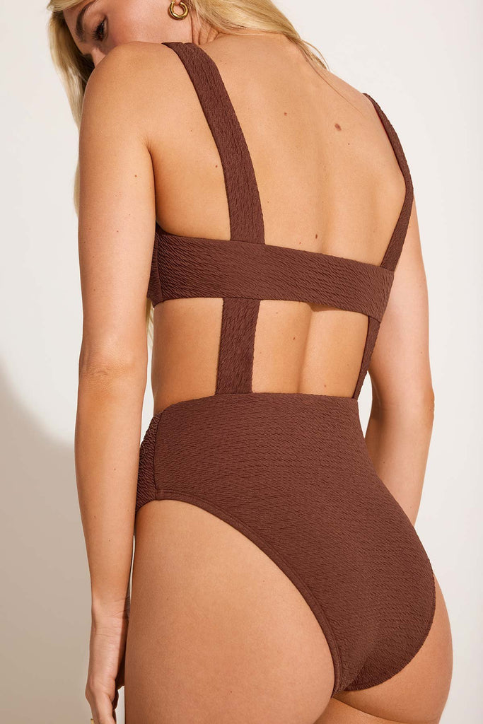 An iconic revival. Skylar is a one-piece spin on one of our bestselling supportive bikini tops featuring a matte gold ring at the center front, and chic cutout detailing at the back.