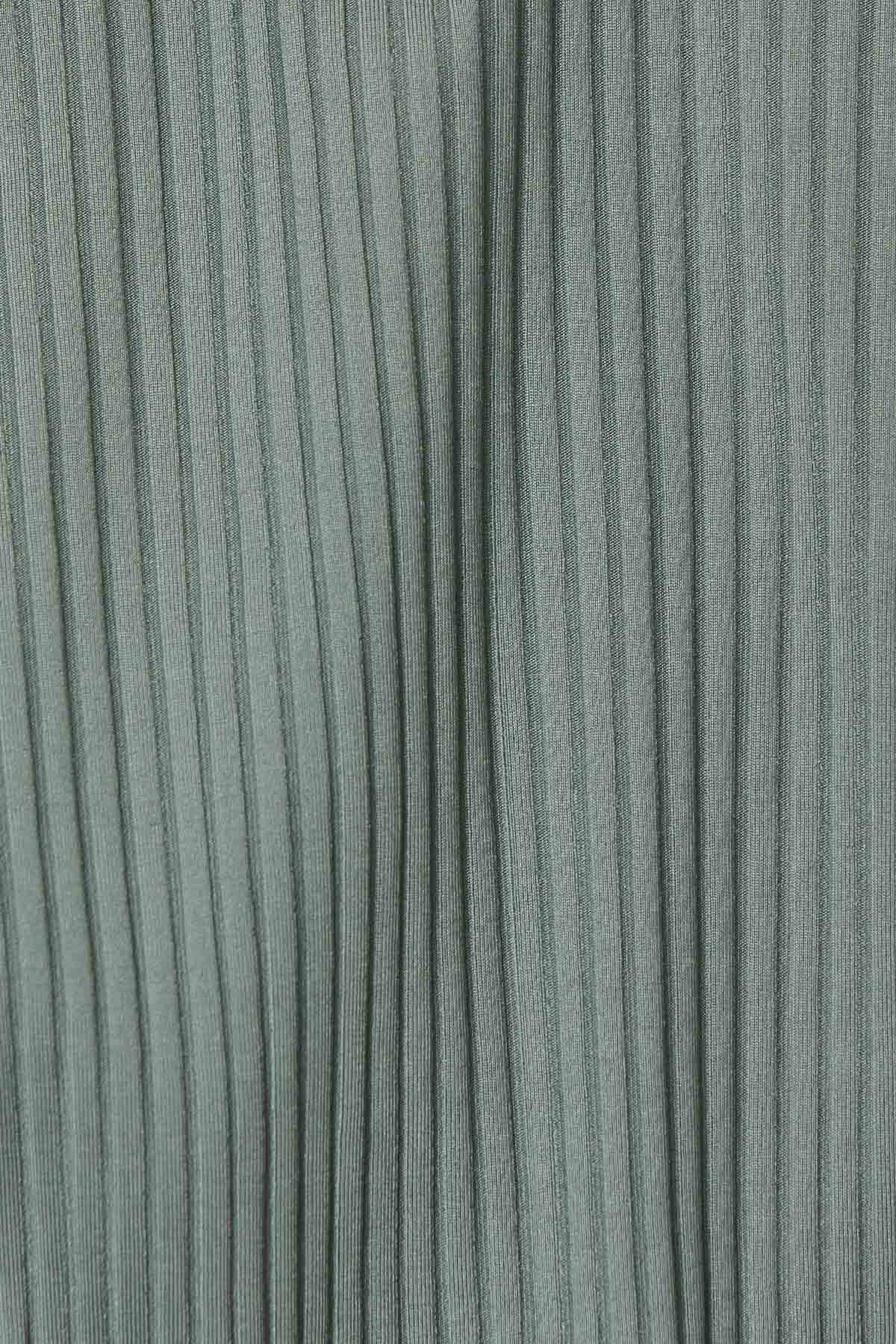 Our EcoRib fabric is a sexy, stretch-ribbed swim fabric made from nylon fabric scraps. It's lightweight, breathable and form-flattering. The EcoRib fabric is textile crafted by a mechanical regeneration system that saves .63 liters of oil and 33 liters of water per meter of fabric. In our mission to cut plastic, this product comes in recyclable packaging.