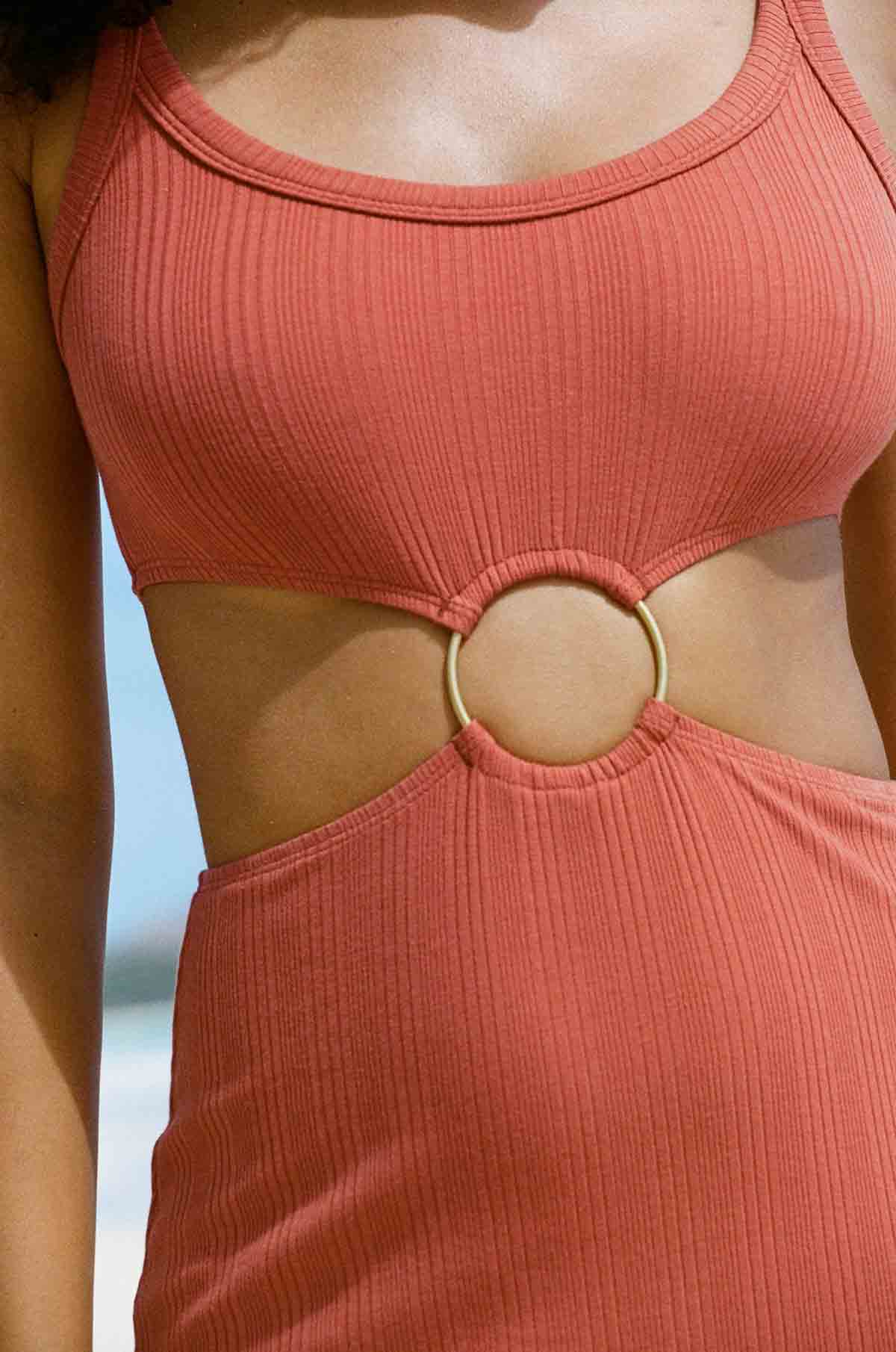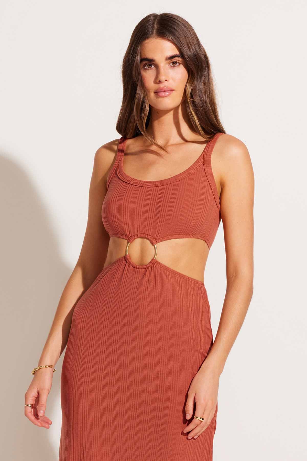 The Icon Cutout Dress - Terracotta Organic Rib